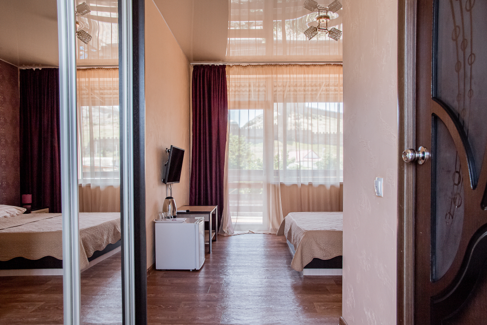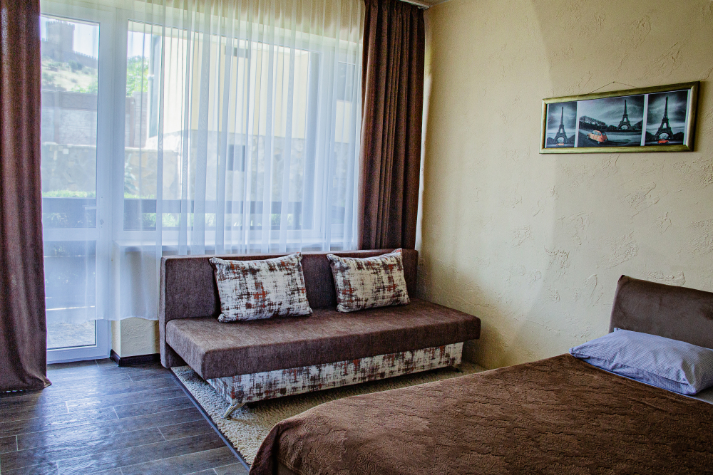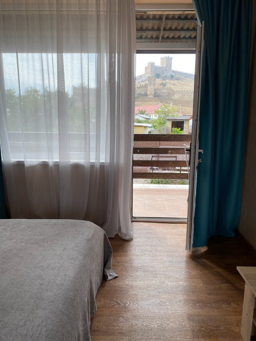 В каждом номере балкон с зоной отдыха и сушилкой. С номеров открывается прекрасный вид на достопримечательность Судака, Генуэзскую крепость.