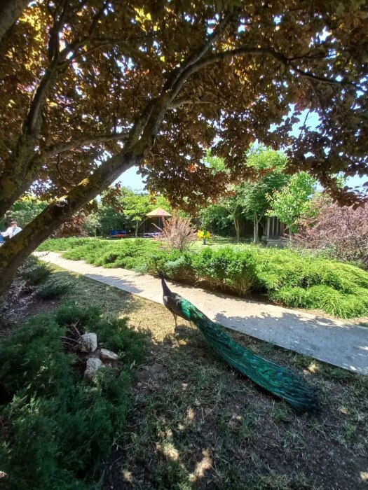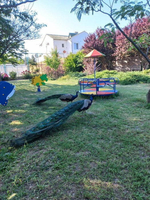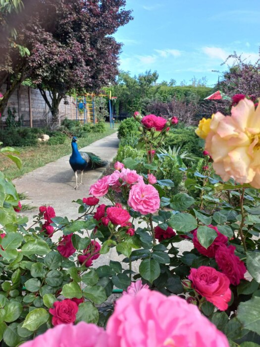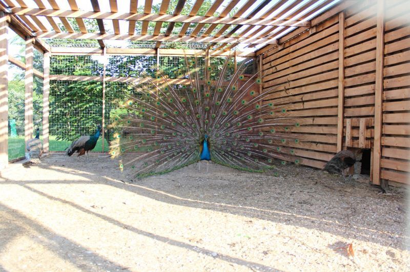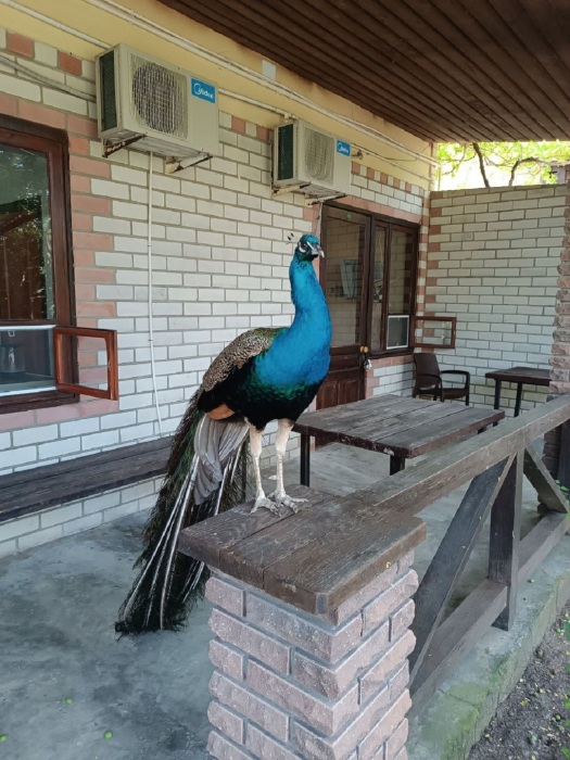 возможность наблюдать за вольготно гуляющими по территории павлинами.