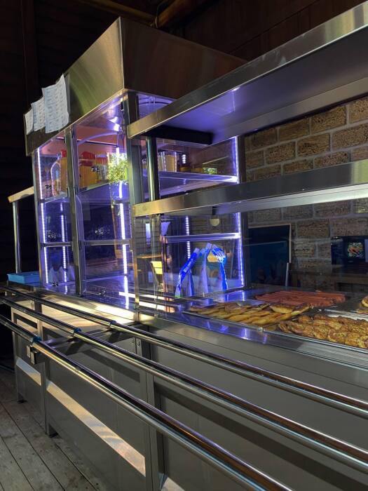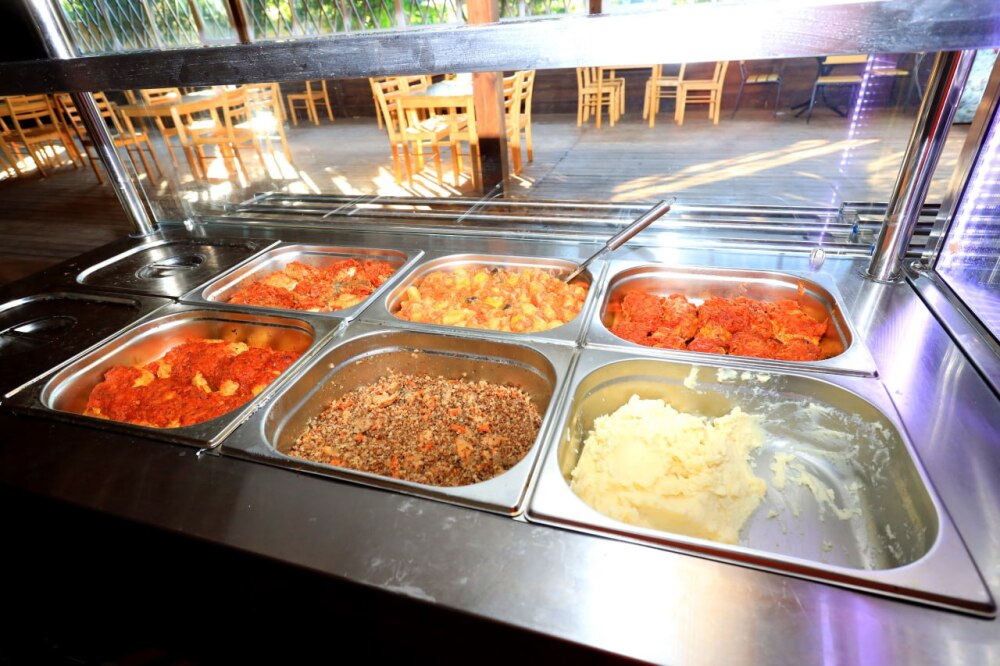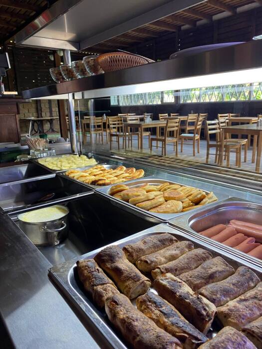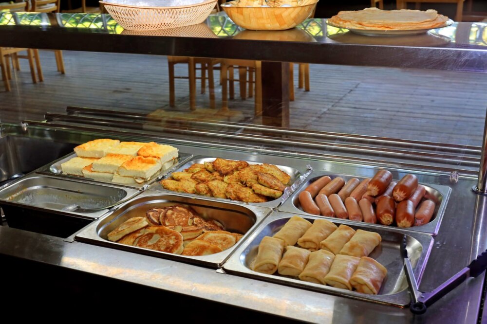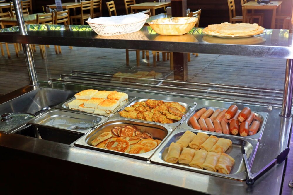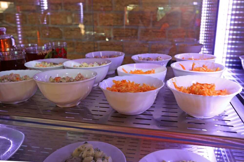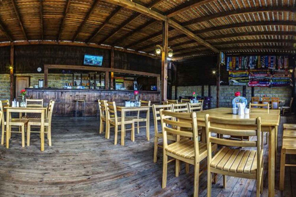 7. На территории парк-отеля располагается кафе-столовая-бар с линией раздачи, где мы предоставляем широкий ассортимент блюд, включая блюда на заказ (местные морепродукты, фаст-фуд, шашлык), а также различные напитки. Имеется мангальная зона