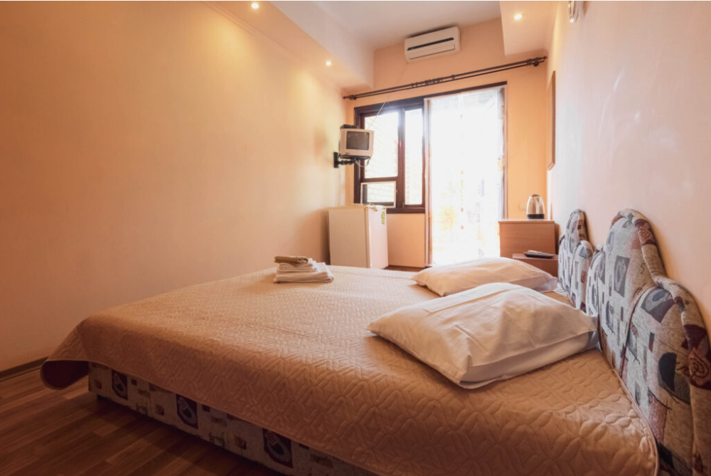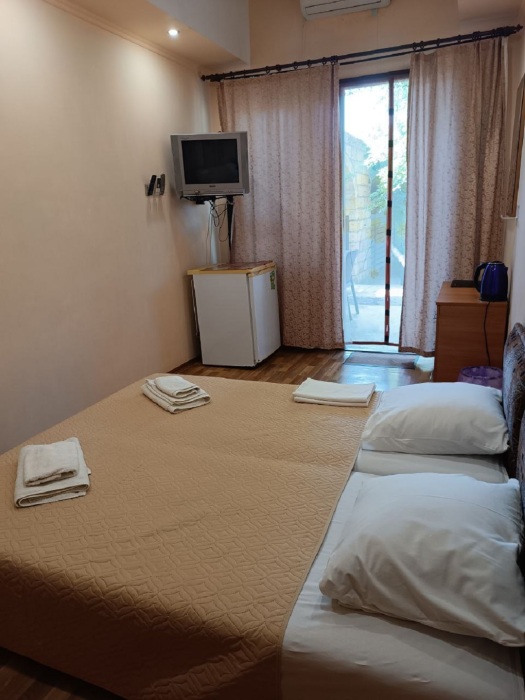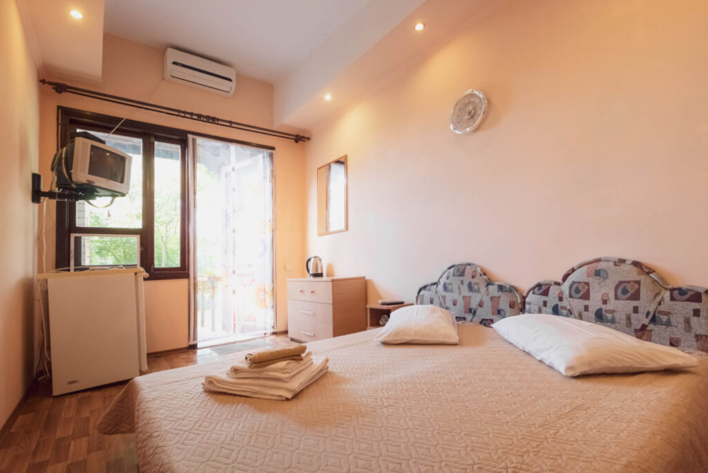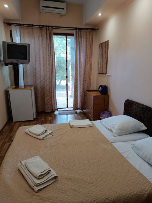 Номер стандарт двухместный. В номере санузел, душевая кабина, кровати, шкаф, тумбочки, комод, холодильник, спутниковое телевидение, кондиционер (сплит-система), терраса, оборудованная деревянной мебелью, WiFi.