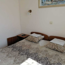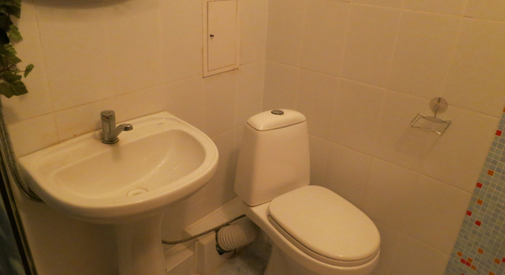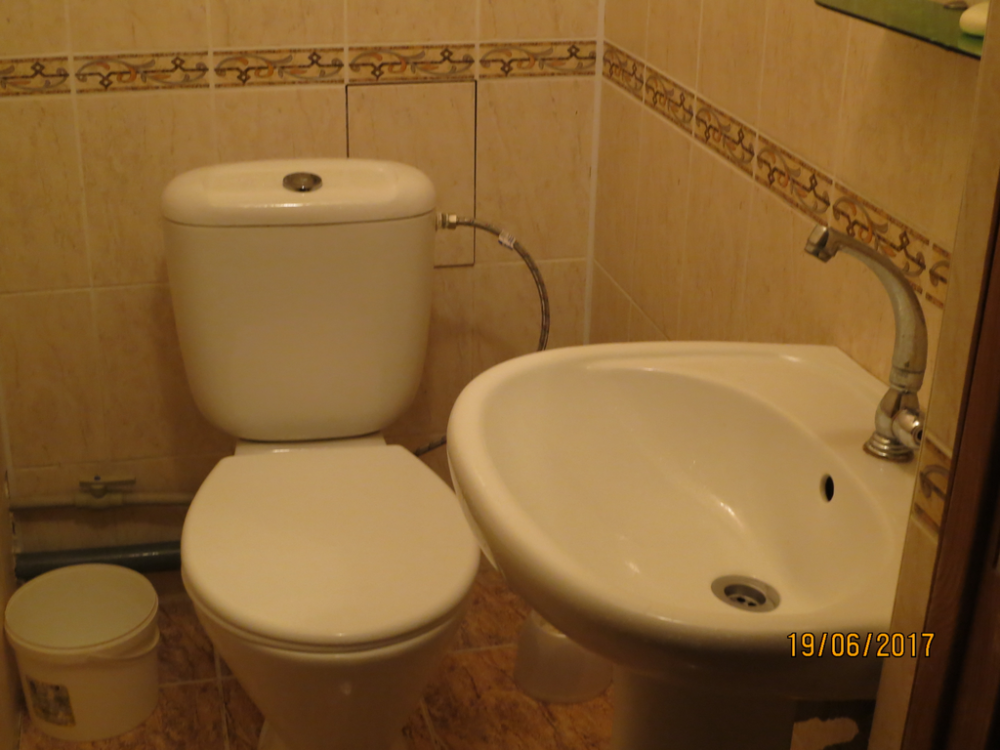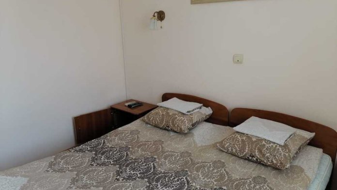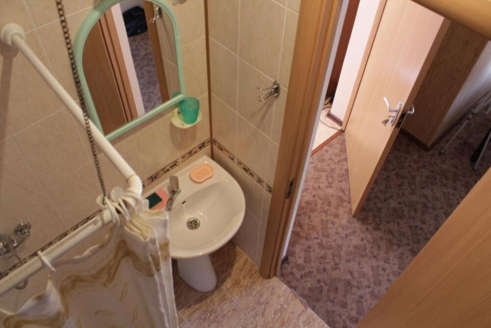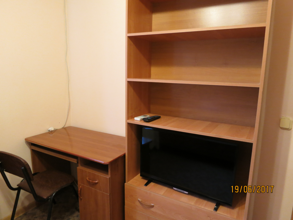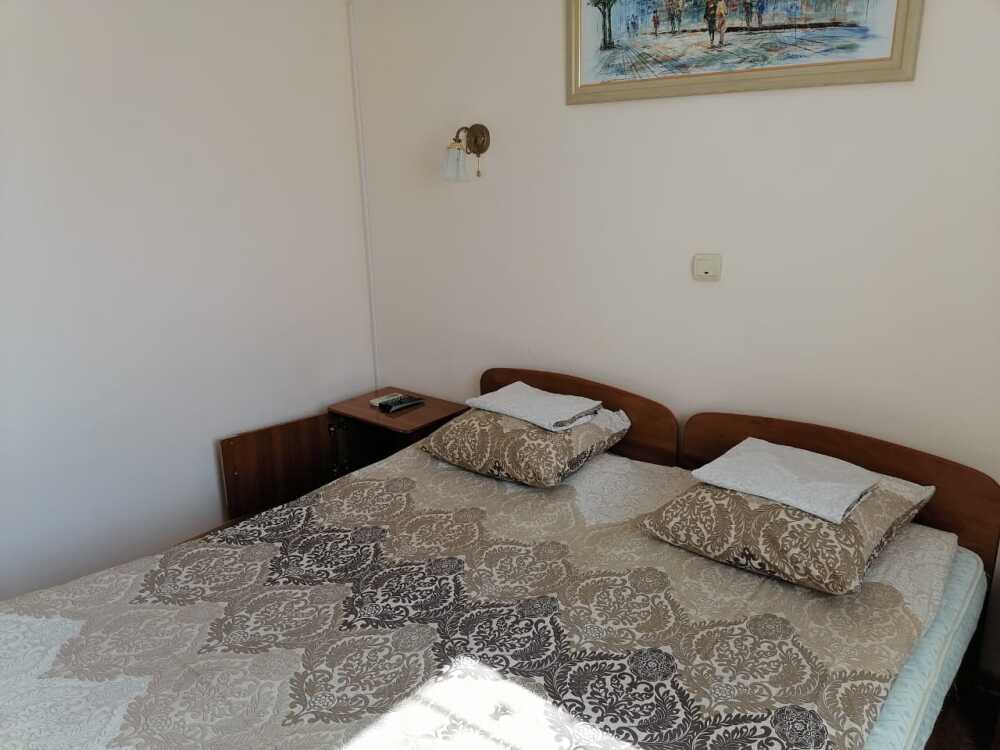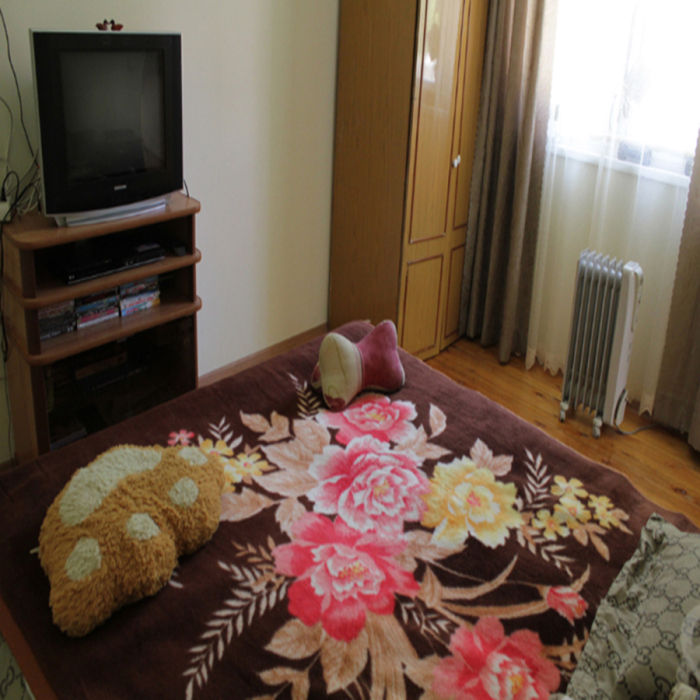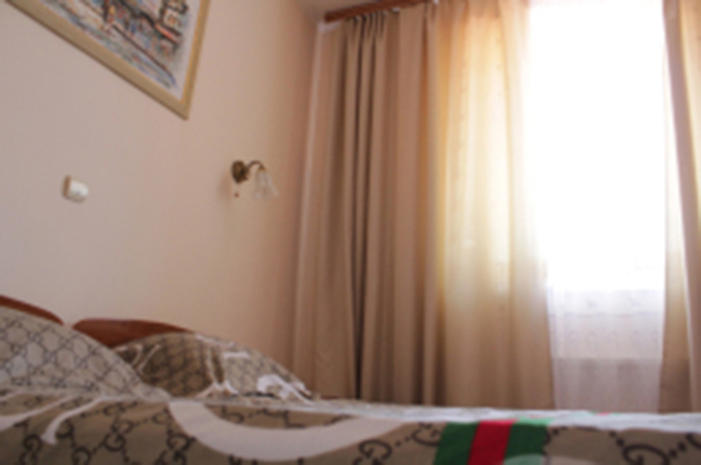 Жилая комната оборудована всем необходимым для проживания: двуспальная кровать, 2 кресла-кровати, прикроватные тумбочки, телевизор, кондиционер, санузел на этаже, душ в номере, интернет. Имеется шкаф для одежды и обуви. Расположен на первом этаже.