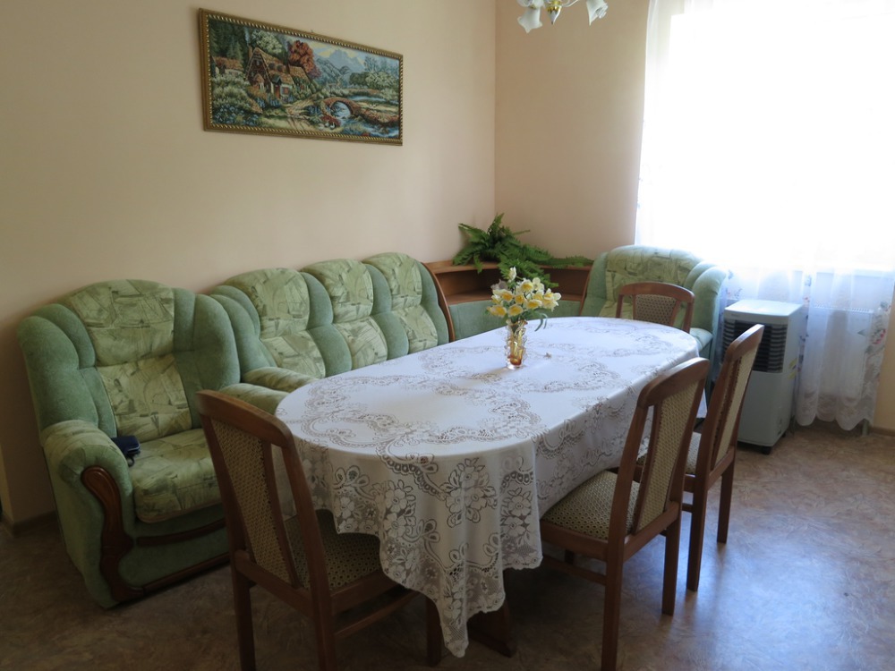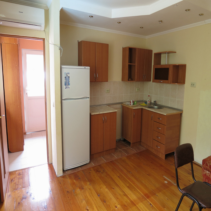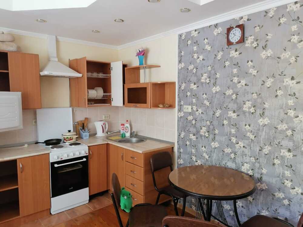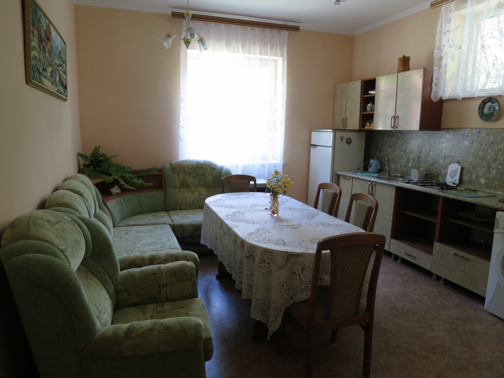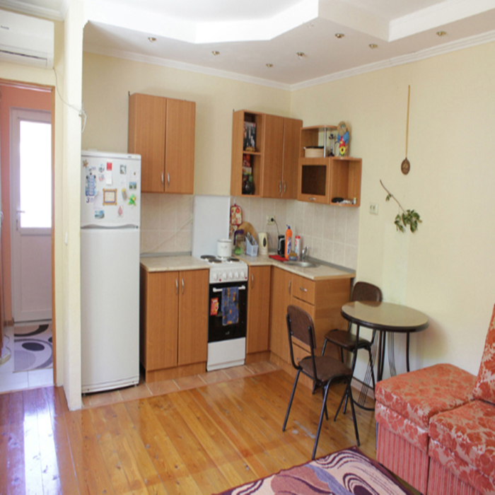 Комната состоит из двух раздельных помещений: гостиной и кухни. Площадь двух комнат 40 кв м. Оборудованы двумя раскладными диванами, два кресла, телевизор, интернет, кондиционер. Кухня оборудована всеми техническими средствами для приготовления пищи, есть стиральная машина