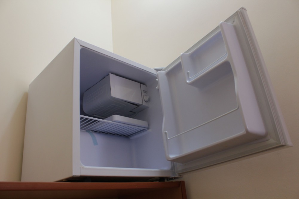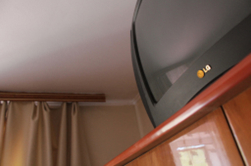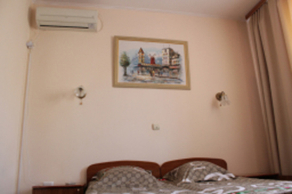 Номер оборудован всем необходимым для комфортного проживания: широкая 2-спальная кровать, прикроватные тумбочки, телевизор, кондиционер, холодильник, интернет. Имеется гардеробное помещение с вешалками для одежды и полкой для багажа и обуви. Отдельный компактный санузел с душем, раковиной и унитазом в номере. Номер расположен на третьем этаже.