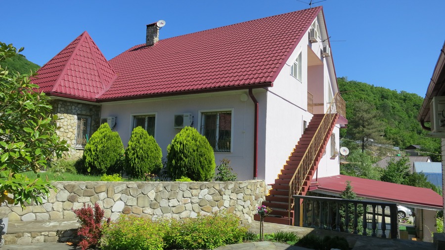 Гостевой дом расположен в посёлке Небуг в спокойном и тихом месте на берегу живописного ручья. Расстояние до пляжа 1600 м. (20 мин. ходьбы), До пляжа также можно добраться маршрутным автобусом ( 2 остановки , стоимость проезда 10 руб ), который ходит каждые 30 мин. До центра посёлка – 600 м, до продуктового магазина – 200 м.