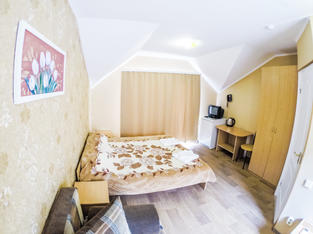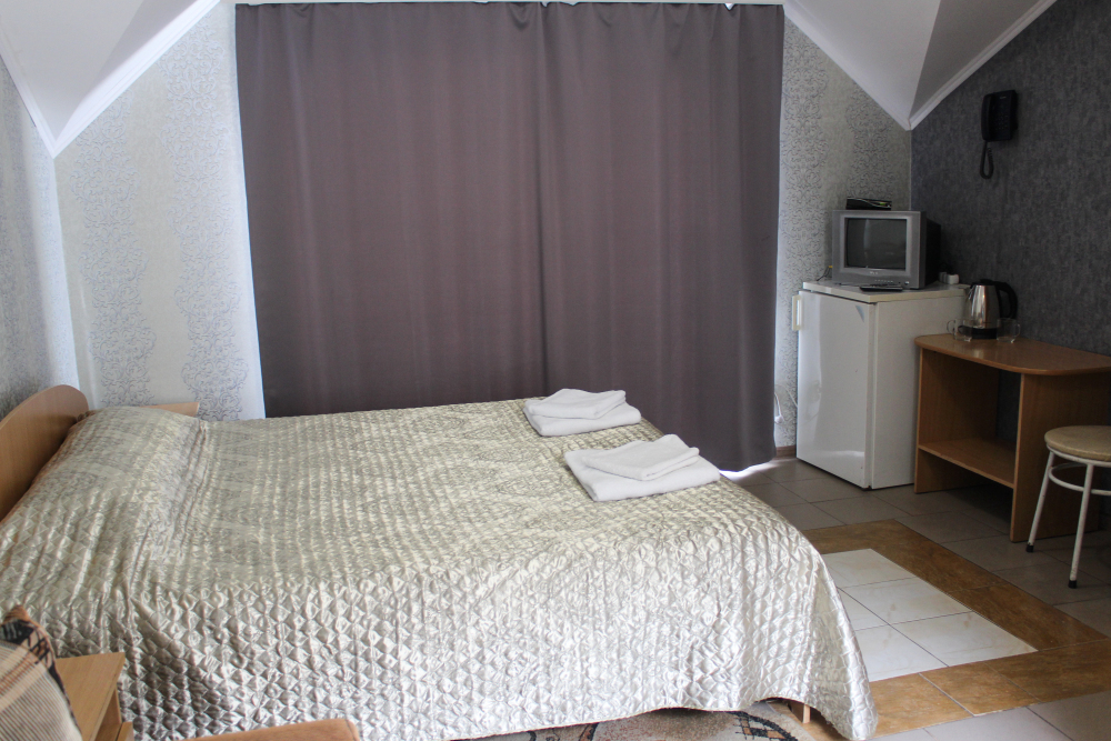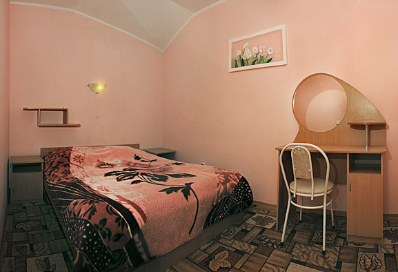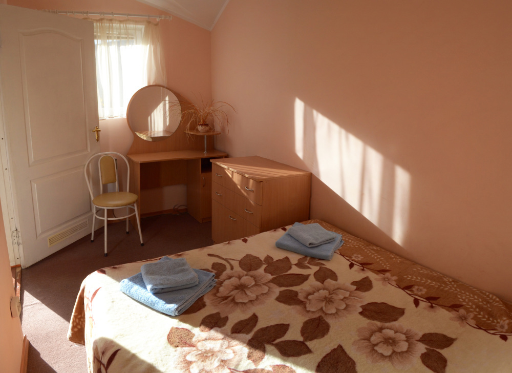 Отдельные двухкомнатные домики площадью 25-28 кв.м. на 2-3 человека со всеми удобствами (душ, телевизор, холодильник, кондиционер, чайник). Спальные места: двуспальная кровать и раскладной двухместный диван. Горячая и холодная вода круглосуточно.
