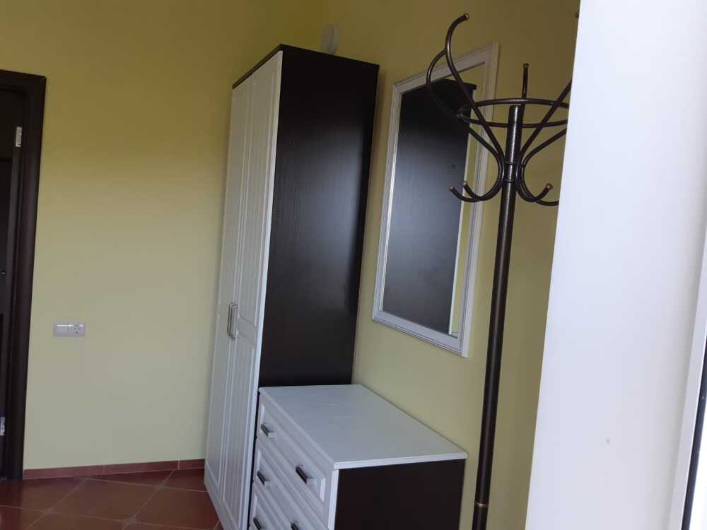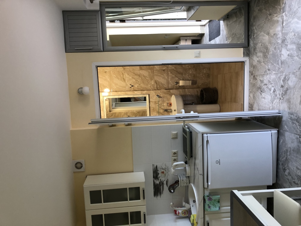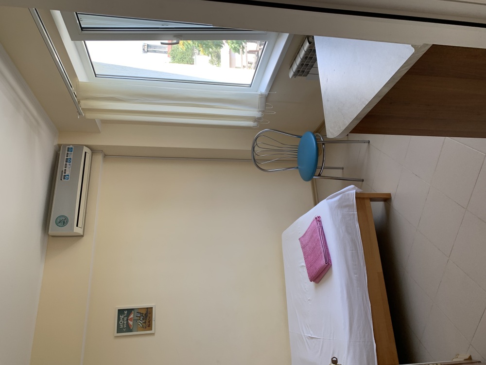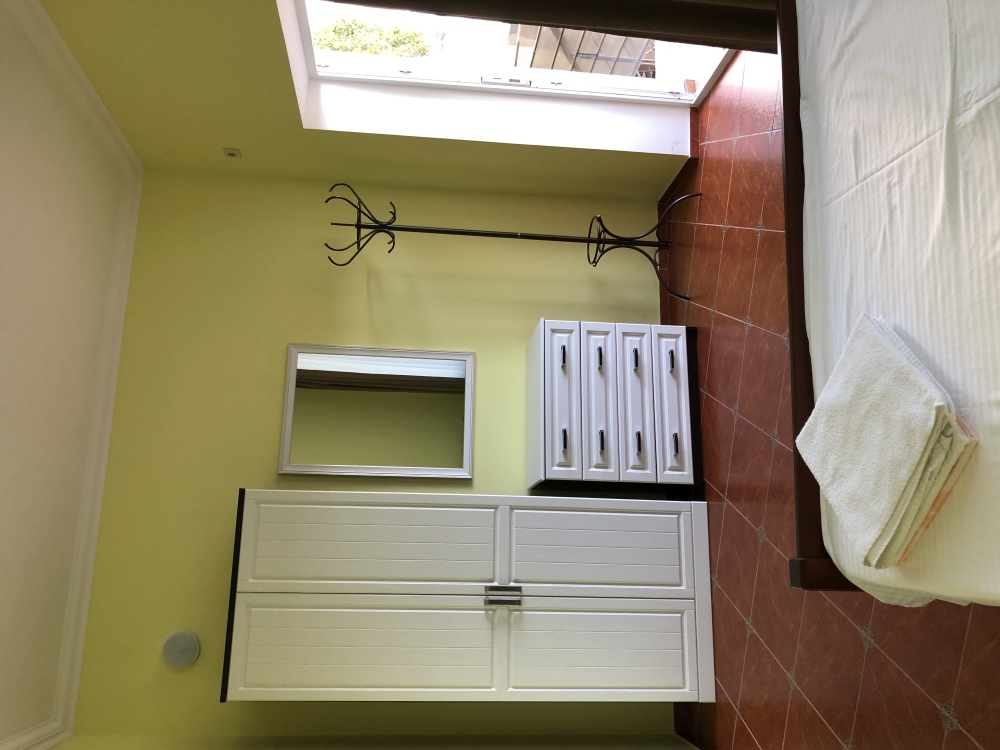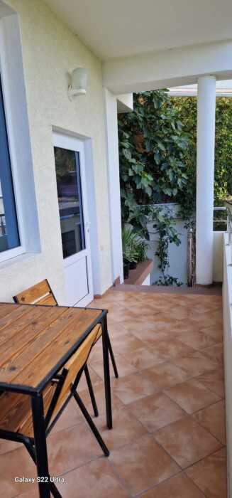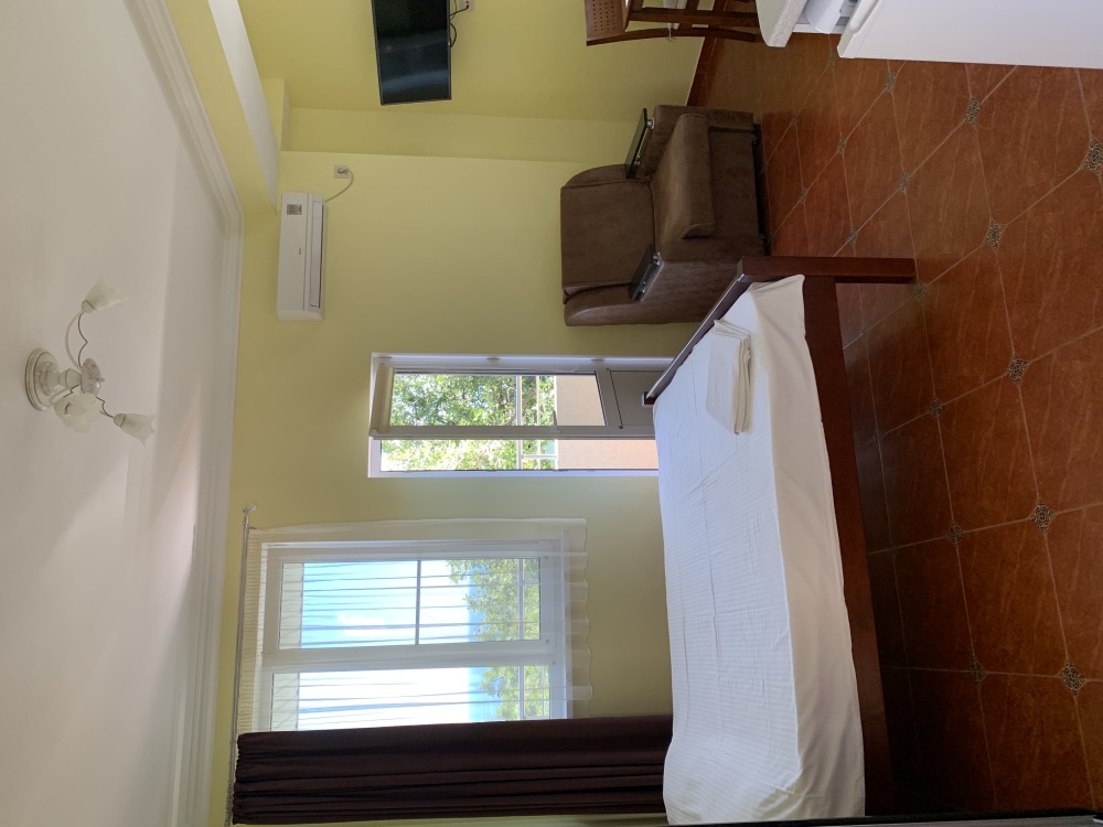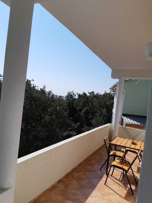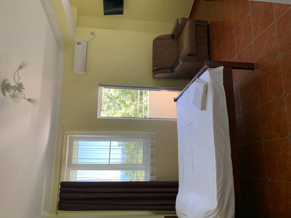 Номер студия расположен на третьем этаже. Вид на море и горы. В номере могут разместиться до трёх человек. В номере есть кухня со всеми необходимыми кухонными принадлежностями.