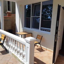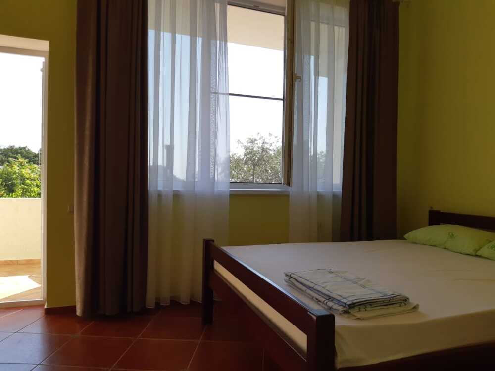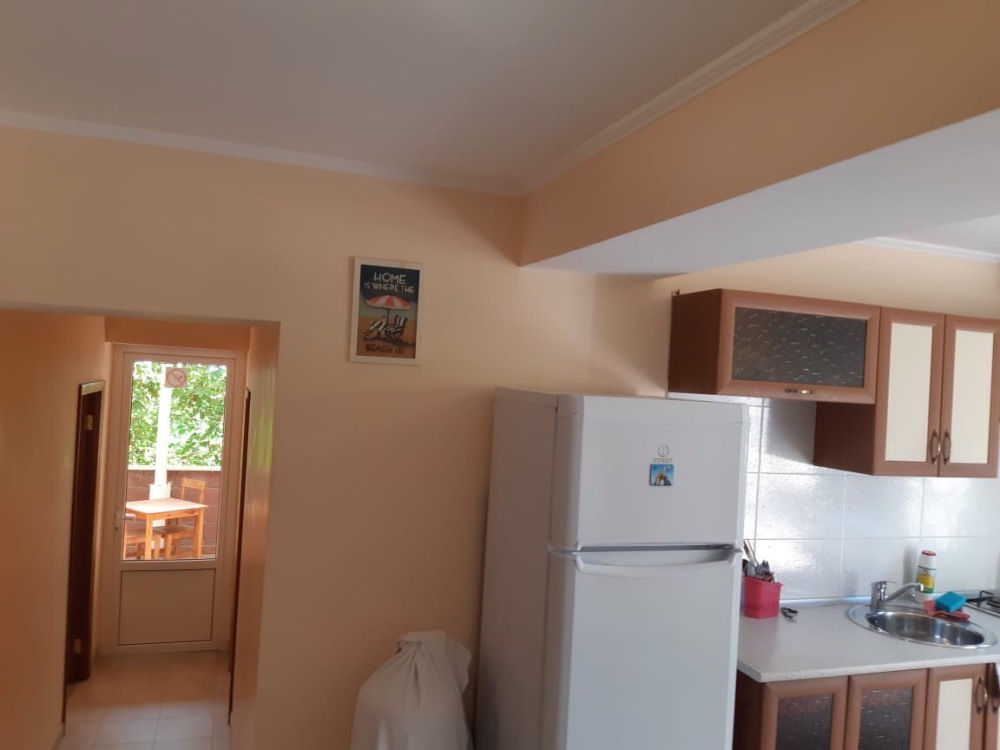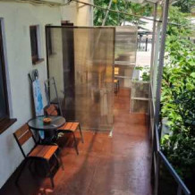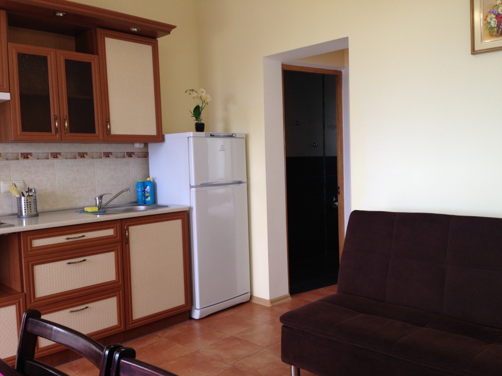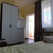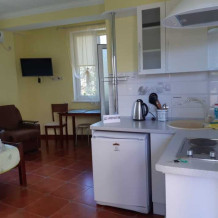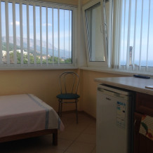 Номер «Однокомнатный» расположен на третьем этаже. Это небольшой уютный номер рассчитан на одного человека или молодую пару. В номере двуспальная кровать 1.50, телевизор, шкаф, кондиционер, холодильник, мини кухня со всеми необходимыми кухонными принадлежностями, санузел с душевой кабиной. Большая лоджия с видом на море и горы.