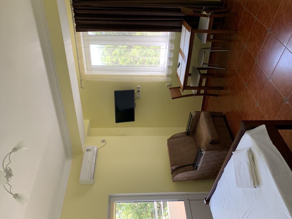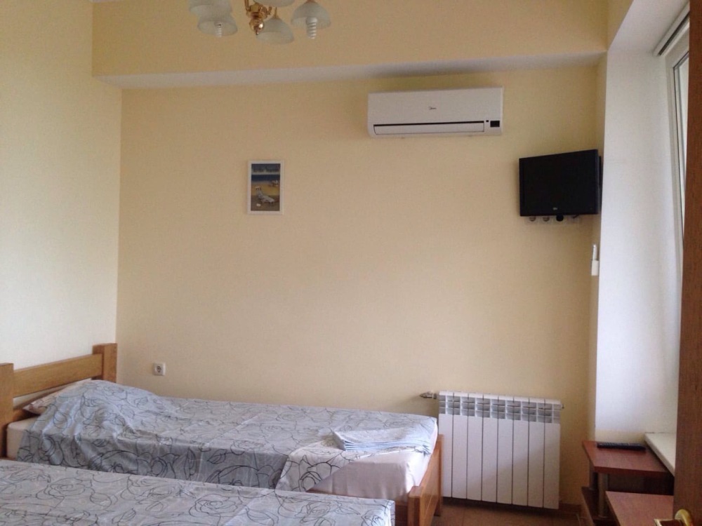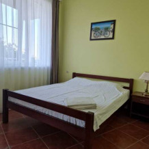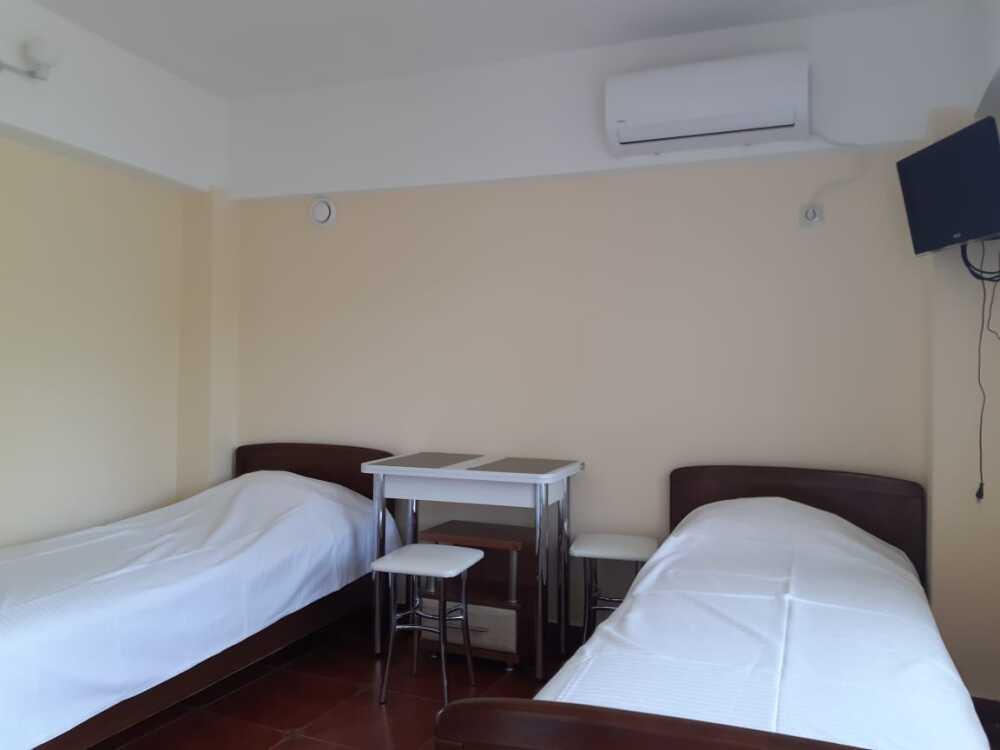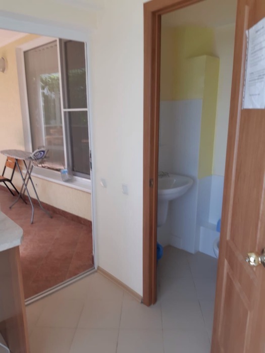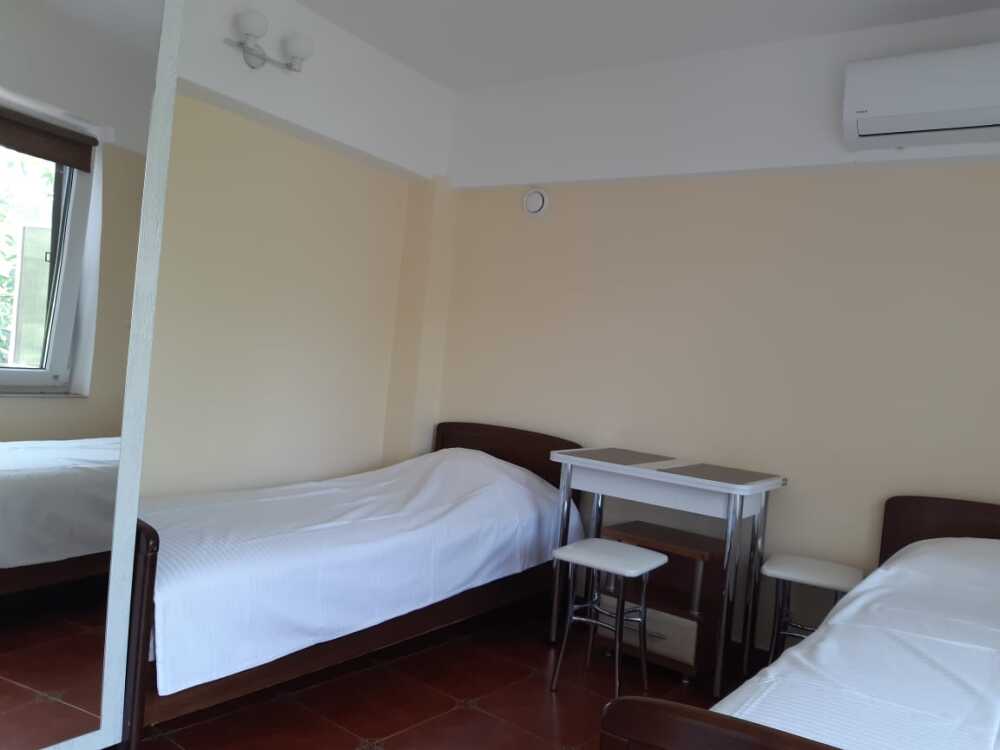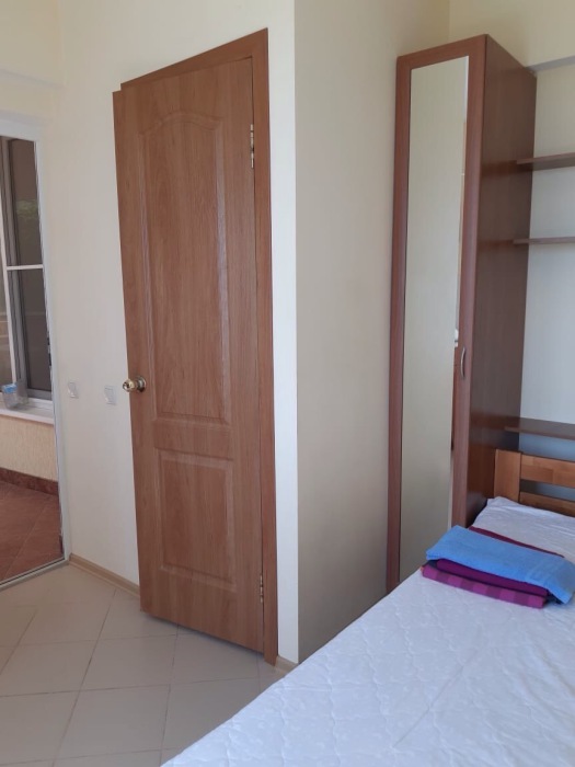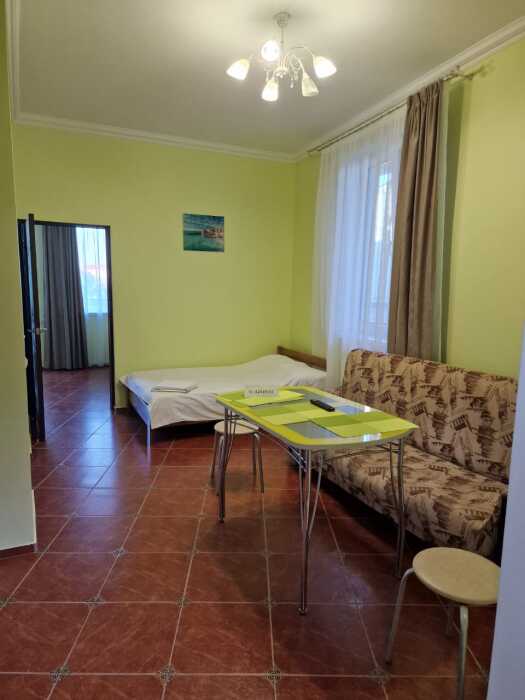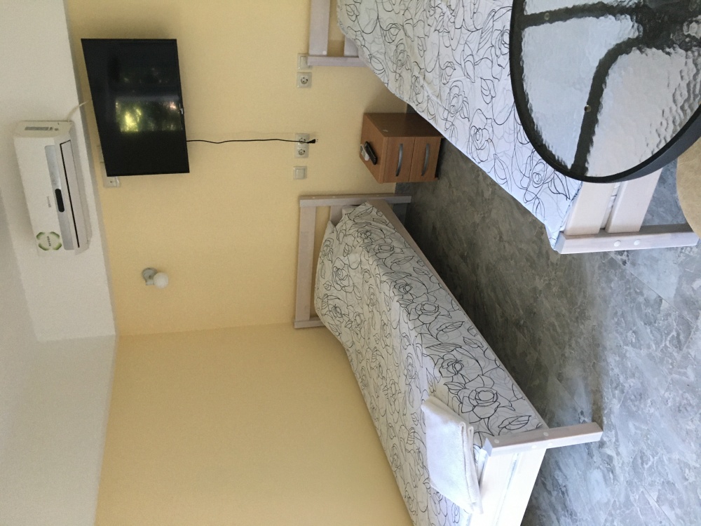Небольшой уютный однокомнатный номер для двух человек, расположен на первом этаже в коттедже. В номере две раздельные кровати, миникухня со всеми необходимыми кухонными принадлежностями, холодильник, телевизор, кондиционер, терраса со столиком и стульями, WI-FI, все необходимое для комфортного проживания.