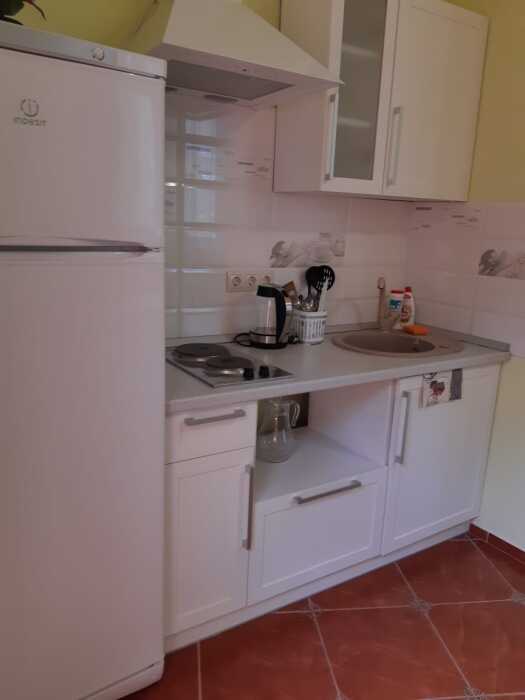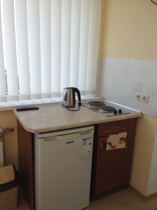 Все необходимое в номере, две раздельные кровати, миникухня с необходимыми кухонными принадлежностями , холодильник, телевизор, терраса со столиком и стульями , Wi-Fi