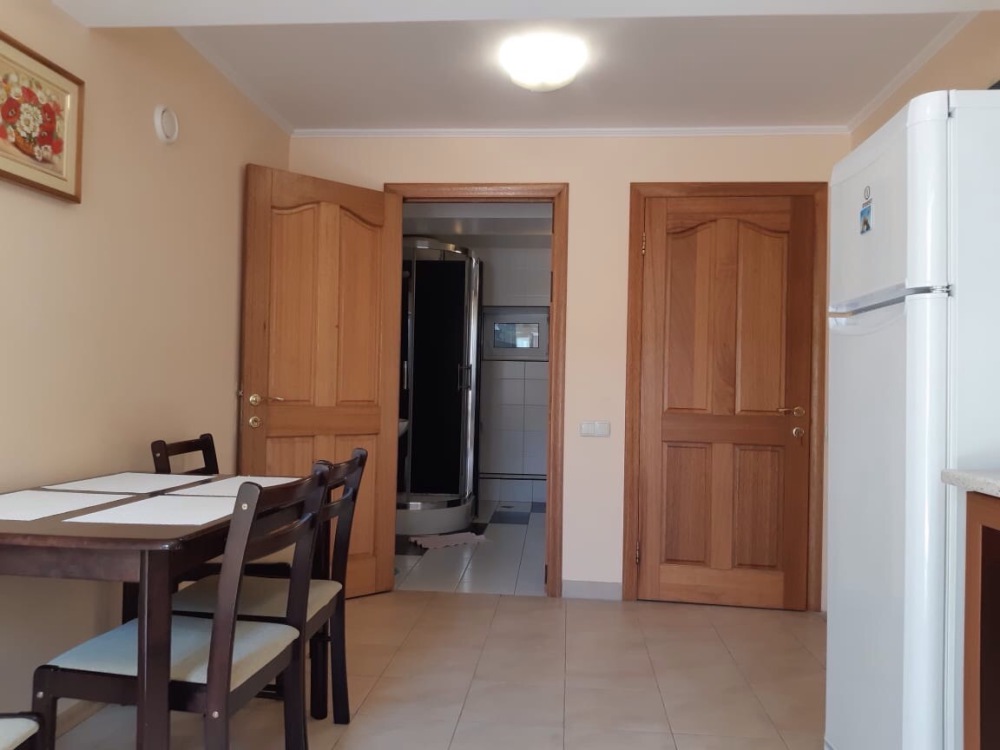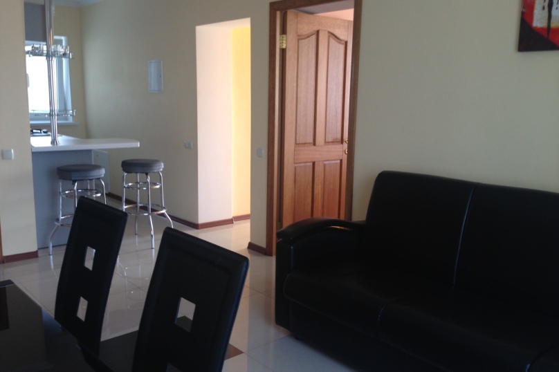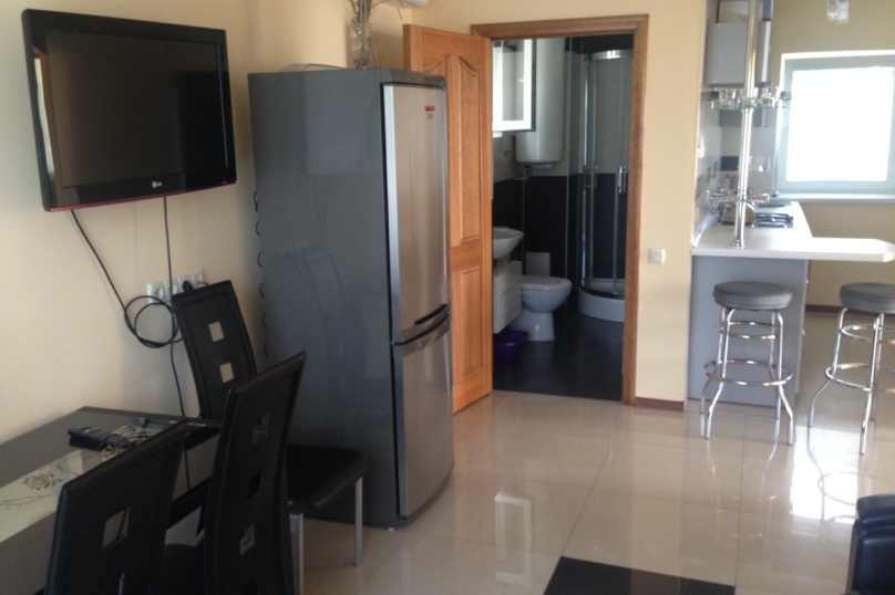В каждом номере своя кухня, посуда, холодильник, телевизор, кондиционер, стиральная машина, кровати с ортопедическими матрасами, сейф, горячая и холодная вода круглосуточно, WI-FI. Закрытая территория, во дворе мангал, деревянные столики.