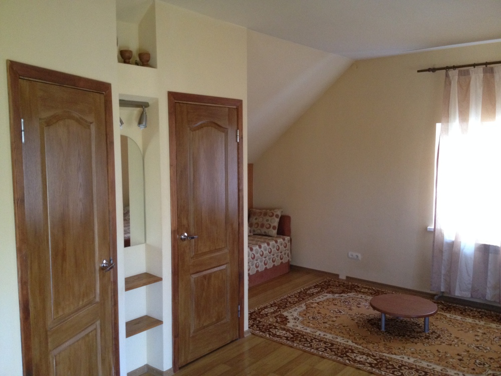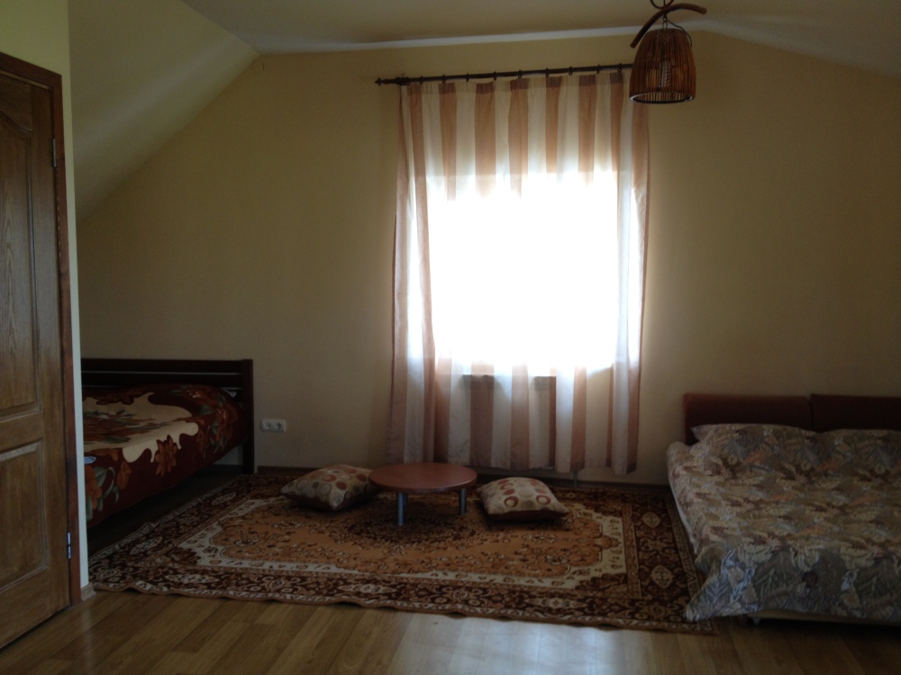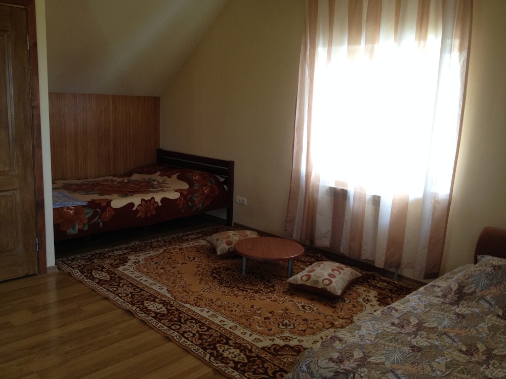 Просторный, комфортный номер расположен на втором этаже, внизу беседка для время провождения на свежем воздухе