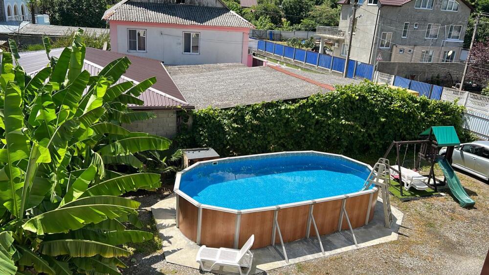 Территория огорожена под видеонаблюдением. Имеются места отдыха с беседкой, мангалом. Во дворе установлен бассейн и детская площадка с батутом.
