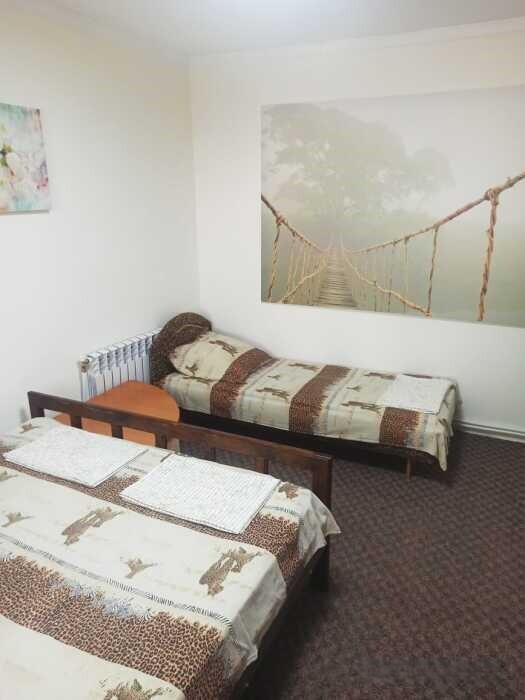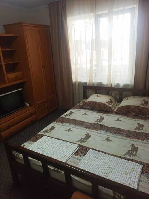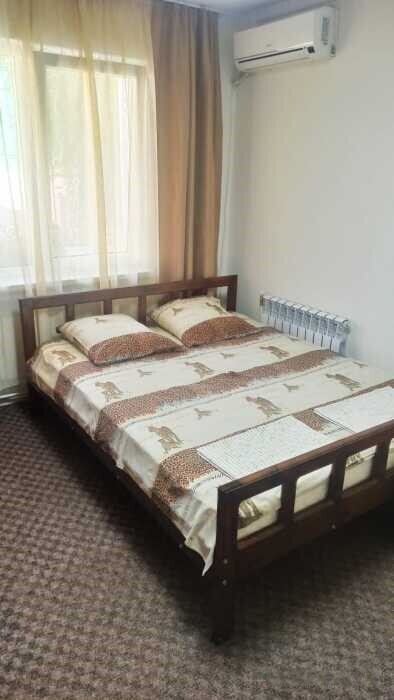 Номер с общим балконом (пластиковая мебель), шкаф, большая 2-спальная кровать + доп. место (диван-кровать) оснащен современной мебелью, спутниковым телевидением, кондиционером, холодильником, электрочайником.
