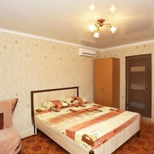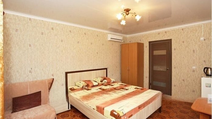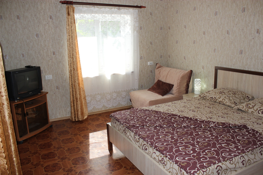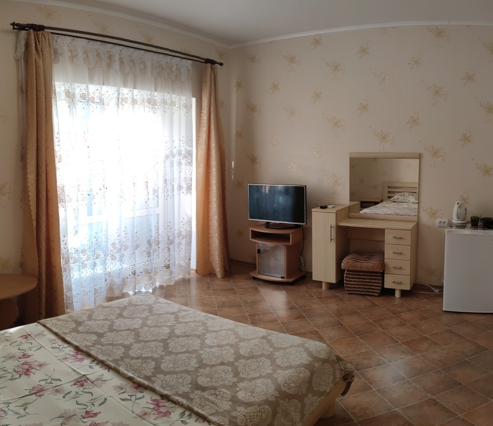 В наличии комнаты категории Стандарт с удобствами в номере. Номер выходит на общий балкон, где гость может расположиться за столиком в тени виноградника, наслаждаясь чашечкой чая или бокалом крымского вина. В комнате 2 основных места, дополнительное 3 место установлено. Также есть в номере: цифровое телевидение кондиционер, холодильник электрочайник. В комнате доступен Wi-Fi.