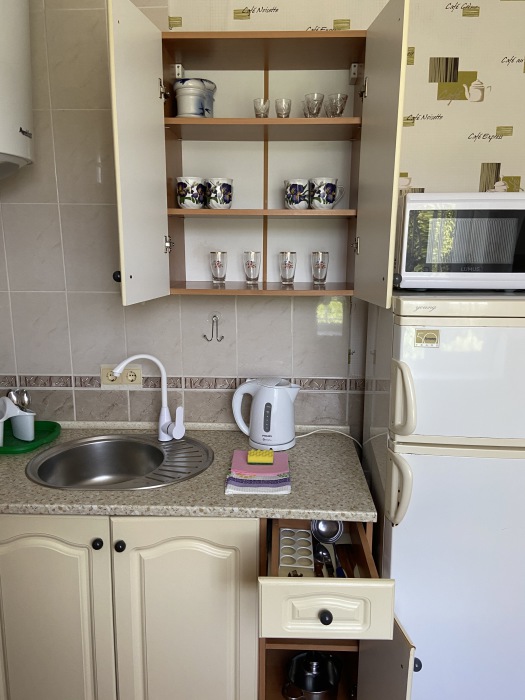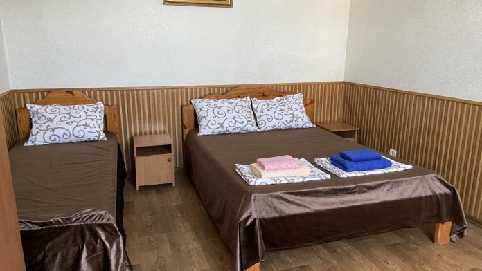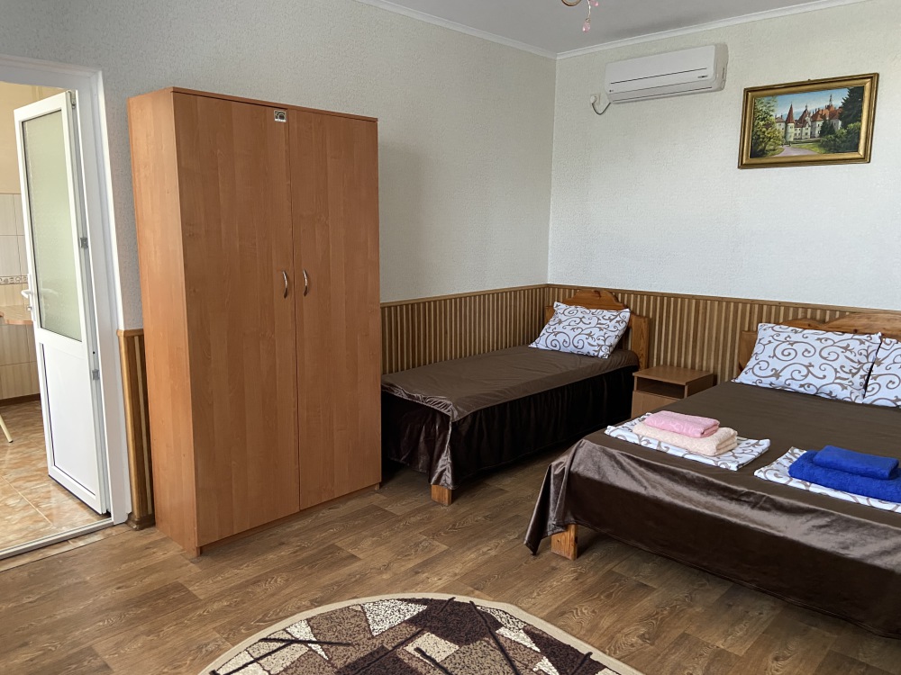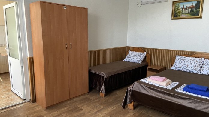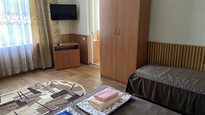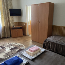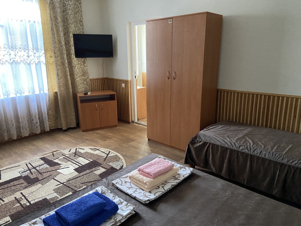 В каждом номере: меблированная кухня (эл.чайник, необходимая посуда, столовые принадлежности, холодильник, электроплита), балкон, кондиционер, цифровое телевидение, интернет Wi-FI, санузел (душ, умывальник, туалет).