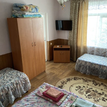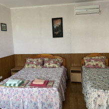 Во всех номерах гостевого дома «Агава» есть необходимая мебель, все кровати деревянные с ортопедическими матрацами, полные комплекты постельных принадлежностей, телевизор ЖК – 32’’ (цифровое телевидение), кондиционер, санузел с душем и туалетом, холодная и горячая вода постоянно.