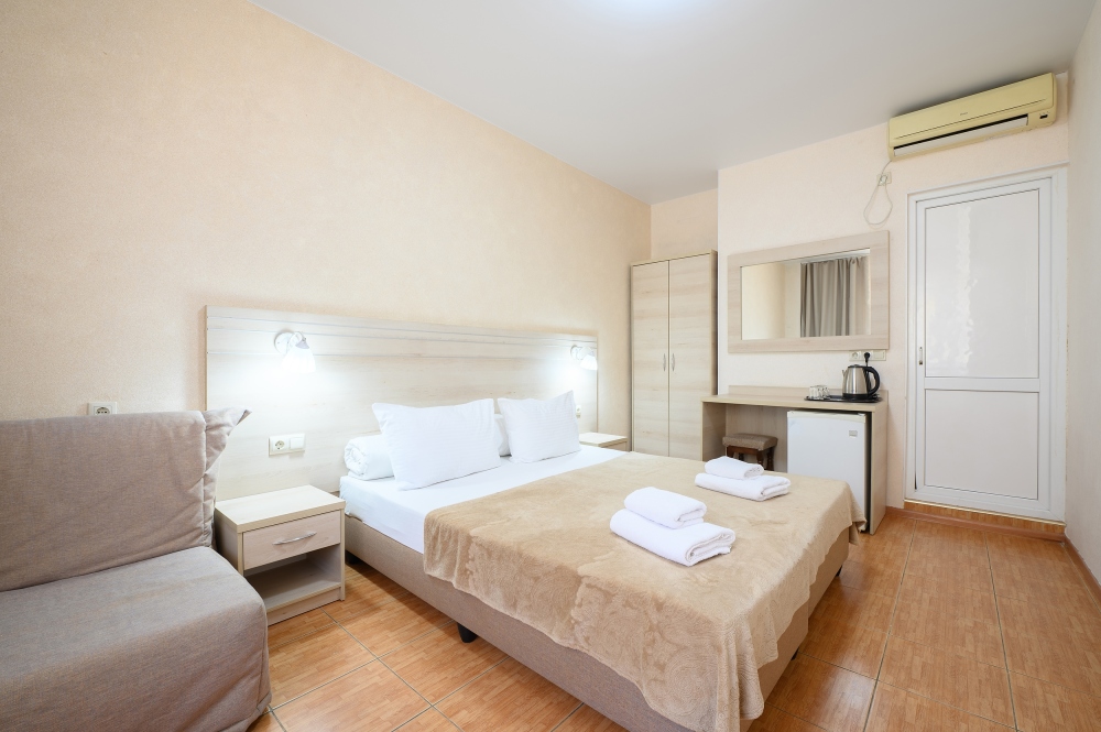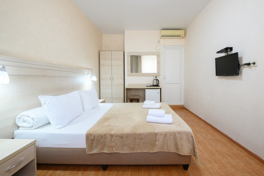 Уютные номера со всем необходимым сделают Ваш отдых максимально комфортным. Все номера благоустроенные, оснащены кондиционером и телевизором с плоским экраном. Во всем отеле предоставляется бесплатный Wi-Fi. К услугам гостей – бесплатные гладильные принадлежности и прачечная. Смена белья, полотенец и уборка номеров каждые три дня или по запросу.