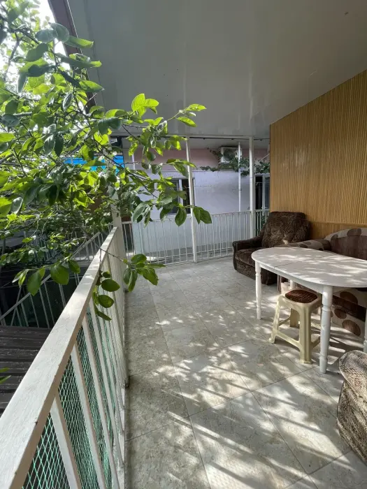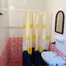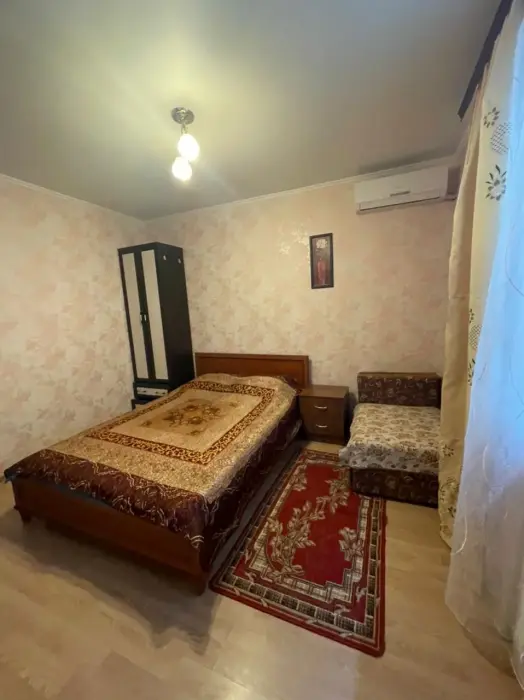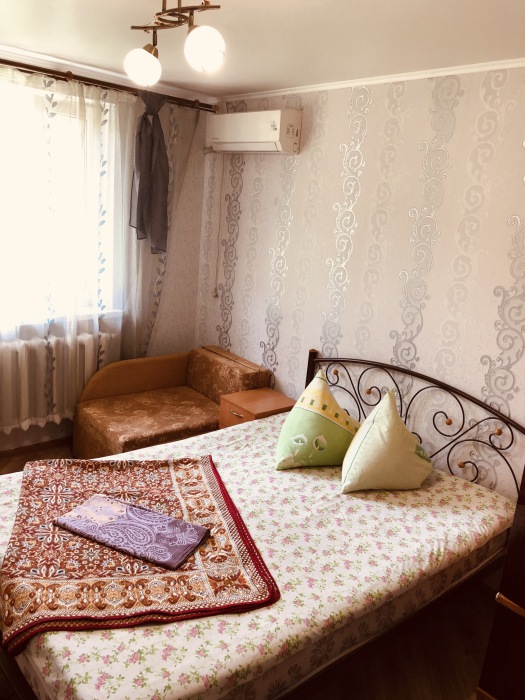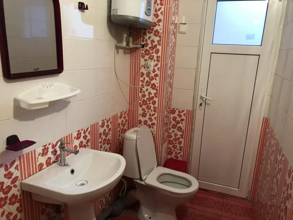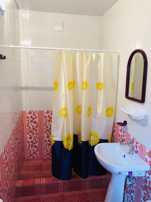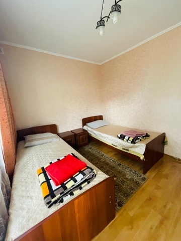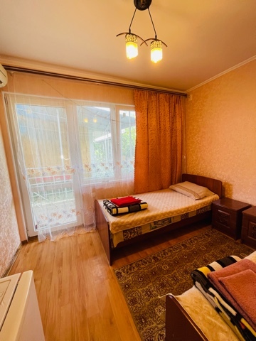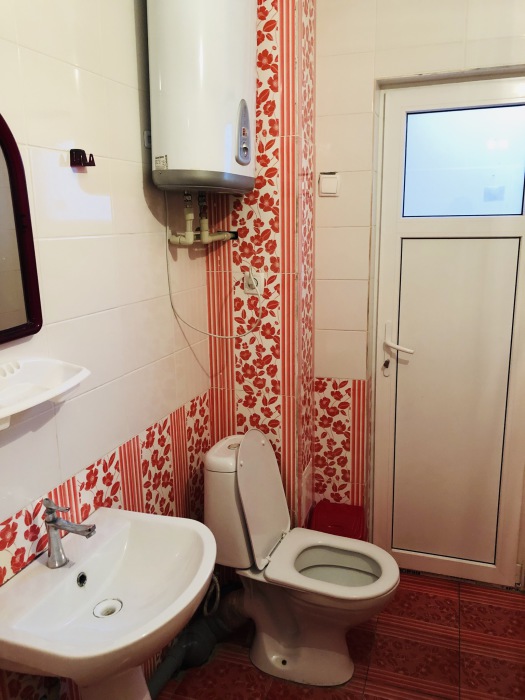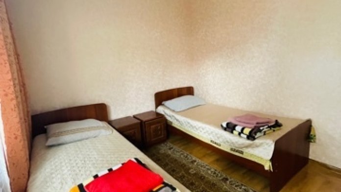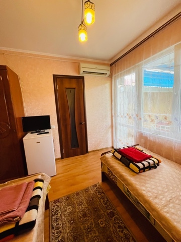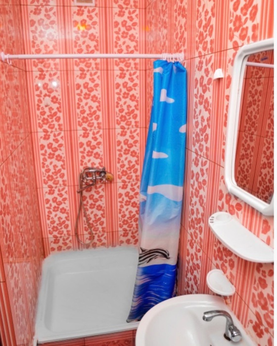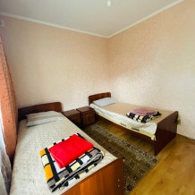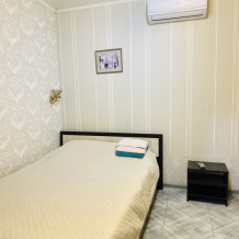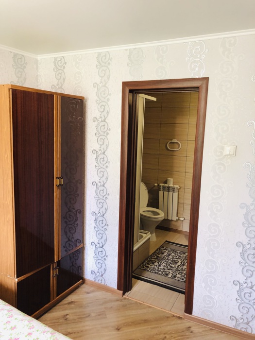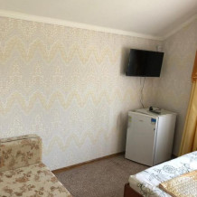 На 2 номера 1 комфортабельная кухня в которой есть ,кухонный гарнитур,стиральная машинка,газовая плита,раковина,столовая посуда.В каждом номере есть: кондиционер, холодильник, телевизор, шкаф, комод, зеркало, душ,умывальник, туалет, мини-чайник.