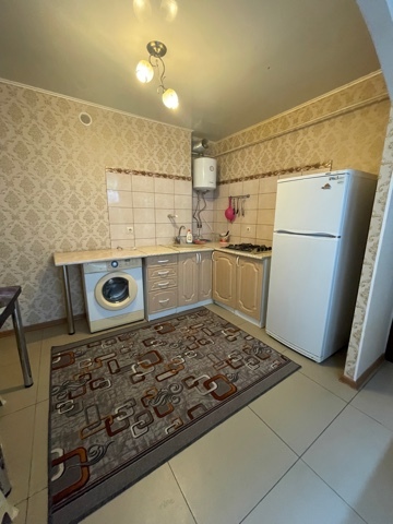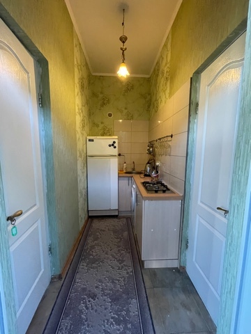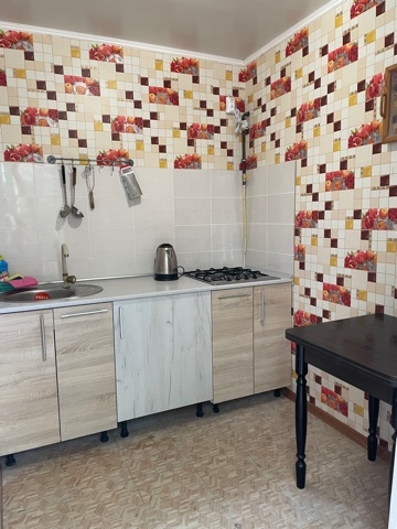 Комфортабельная кухня: кухонный гарнитур ,холодильник,обеденный стол и стулья,столовая и кухонная посуда,отдельный вход.