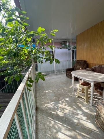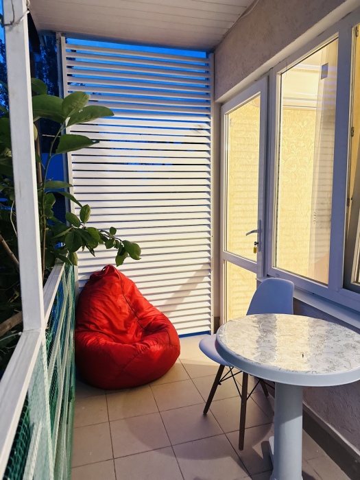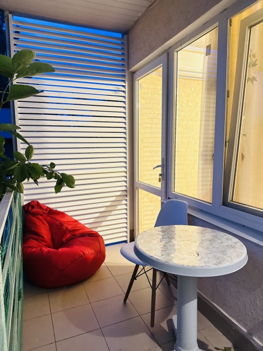 Отдельная просторная зона на балконе ,стол и 2 дивана,где можно провести с удовольствием время.