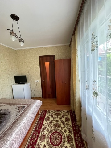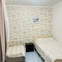 в гостином дворе « Москвичка « 2 трёхместных номера ,к каждому номеру есть своя зона отдыха.на территории 2 душа и 2 сан.узла ,горячая и холодная вода подаётся круглосуточно,также есть общая комфортабельная кухня,в которой можно приготовить завтрак ,обед и ужин.В наличии стиральная машинка.В каждом номере есть вентилятор,шкаф,телевизор.