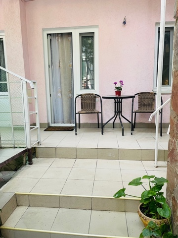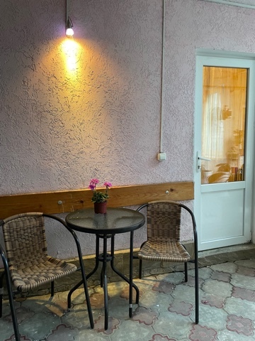 А также во дворике у номера имеется личная зона отдыха с обеденным столом и стульями.