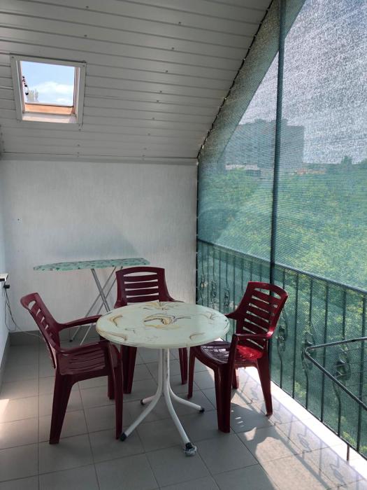В номере отдельная комфортабельная кухня в которой есть холодильник,кухонный гарнитур,газовая плита,стиральная машина,раковина,столовая посуда, обеденный стол и стулья Горячая и холодная вода подается круглосуточно! Отдельная просторная зона на балконе ,где можно провести с удовольствием время.