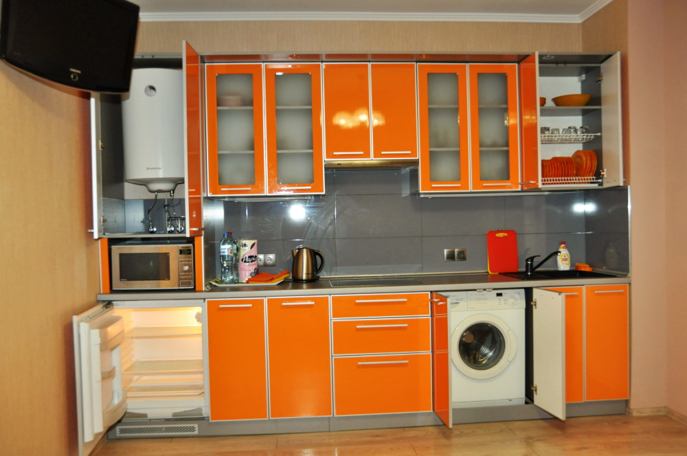В апартаменте имеется отдельная спальня, кухня со спальным местом, совмещенный санузел с душевой кабиной, коридор, балкон. Двуспальная кровать, большой раскладной диван, трехстворчатый шкаф, туалетный столик-зеркало, прикроватная тумбочка, тумба под телевизор, обеденная группа, кондиционер, утюг, гладильная доска, фен, сейф, напольный вентилятор, пылесос, 2 телевизора, холодильник, плита (на 4 конфорки), стиральная машина, бойлер, микроволновка, электрочайник, полный ассортимент обеденной и чайной посуды, скоростной WI-FI. Имеется набор полотенец и косметика для душа. На балконе большой обеденный стол со стульями, за которым Вы под шум прибоя, с замечательным панорамным видом на море и горы проведете незабываемые вечера.