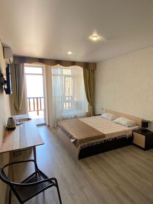 На выбор гостей представлены номера различной вместимости с прекрасным видом на море, в которых есть все для комфортного отдыха: необходимая мебель, техника (LCD TV, электрочайник) , Wi-Fi, и отдельная кухня для самостоятельного приготовления еды. Так же в 5 минутах находится кафе с колоритной крымской кухней и доступными ценами. Апартаменты находятся недалеко от пляжа, прогулка к которому, занимает не более 7 минут.