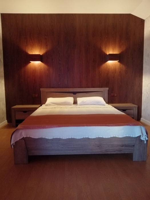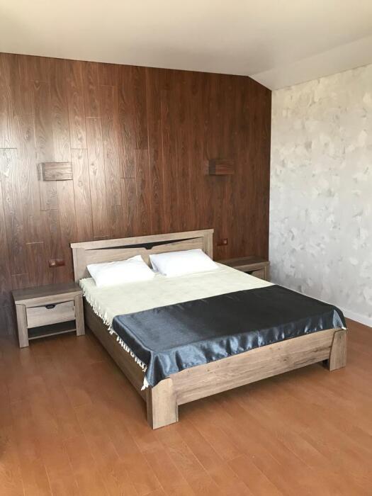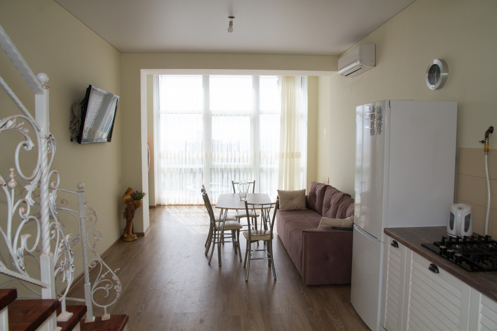 Люкс с видом на море, два уровня. 2 спальни (21 кв.м.) на 1 и 2 этаже, 2 санузла, 2 душа, кухня-столовая (35 кв.м.) с видом на море, терраса. Размещение до 8 человек.