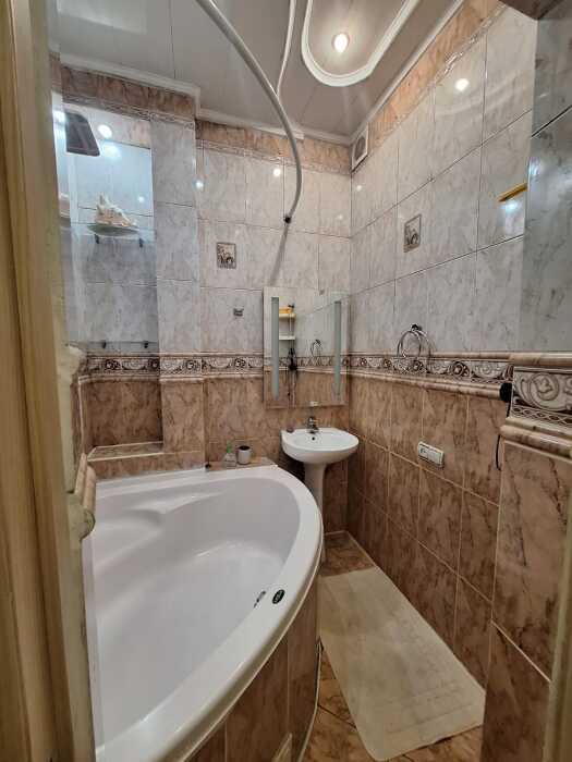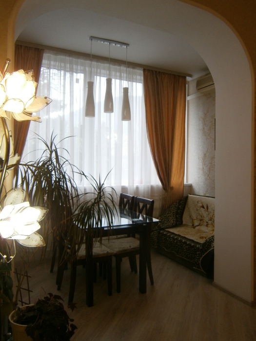 Рядом военный санаторий с красивым парком для отдыха.Квартира расположена на втором этаже пятиэтажного здания, имеется закрытый коридор, где можно оставить детскую коляску или предметы пляжного обихода,сделан свежий ремонт,оборудована двумя кондиционерами,двумя ЖК телевизорами 42 и 32 дюйма,стиральной машинкой --автомат,СВЧ печь,интернет WI-FI .