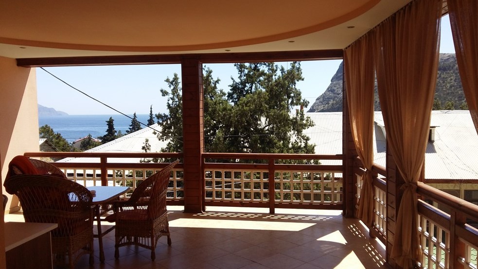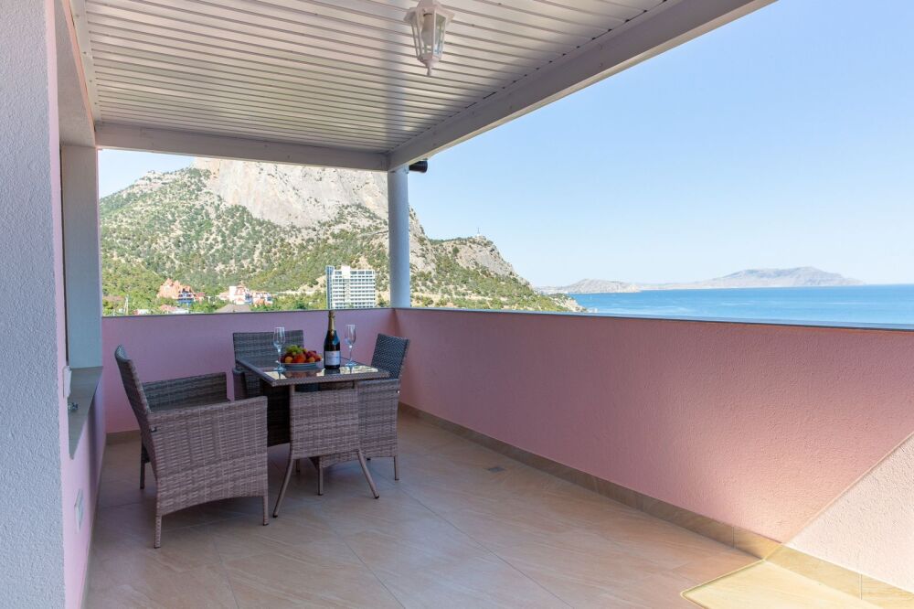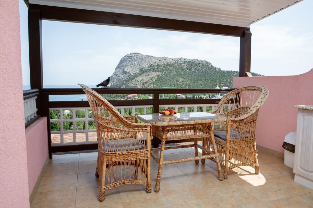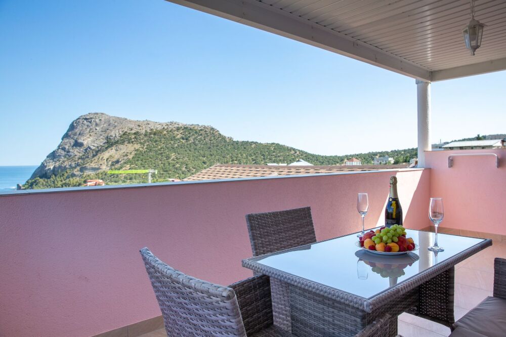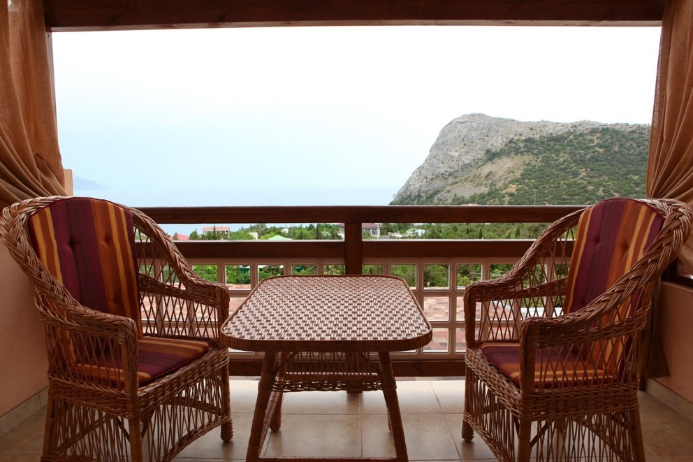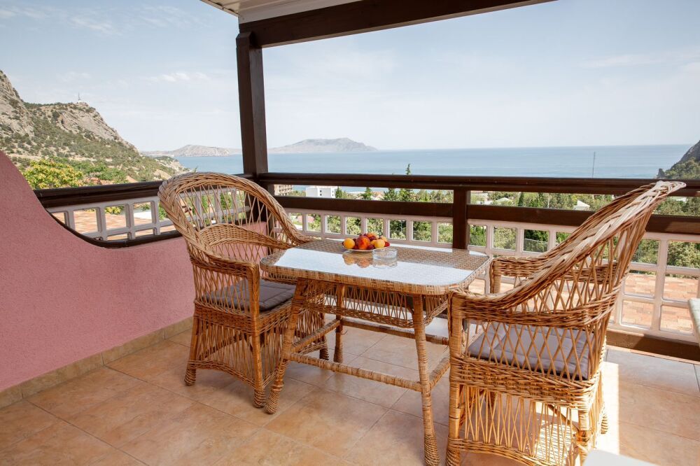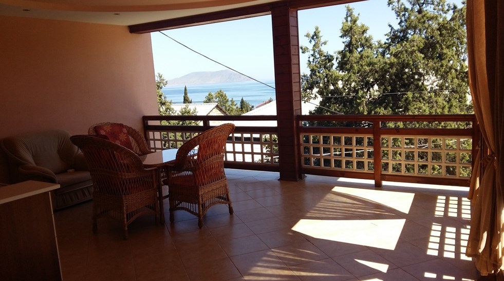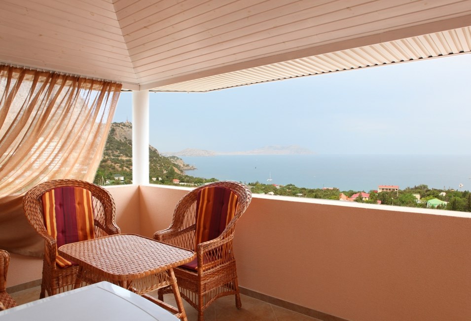 Люкс №6, 2х комнатный. Просторная терраса 22 кв.м., 3 этаж, панорамный вид на море, мебель для отдыха.