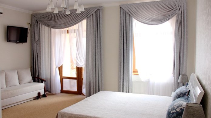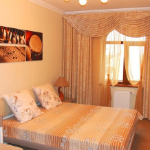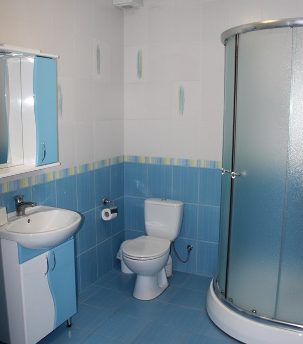 Номер комфорт выполнен в современном стиле. В номере есть санузел с душевой кабиной, 2 спальная кровать, диван-кровать, шкаф купе, трюмо, холодильник, чайник, телевизор, Wi-Fi в номере. Вид из окна во двор, на территории отеля есть двор с садовой мебелью для отдыха.