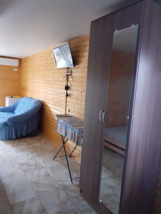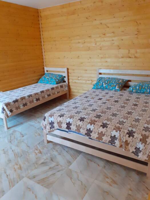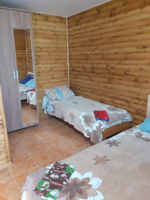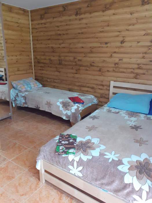 Вход в каждый номер отдельный, вода холодная и горячая постоянно, номер оборудован - стол, стул, отельный шифоньер, тумбочка, ж/к телевизор, двухспальная и односпальная кровати