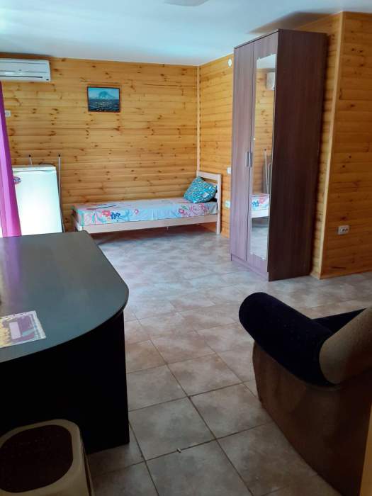 - Однокомнатный (2 шт. рассчитан на 2-3 человек) - из мебели, двух спальная кровать и односпальная кровать, стол, шифоньер, телевизор. Холодильник для данных номеров стоит в общей кухне, достаточно вместительный.