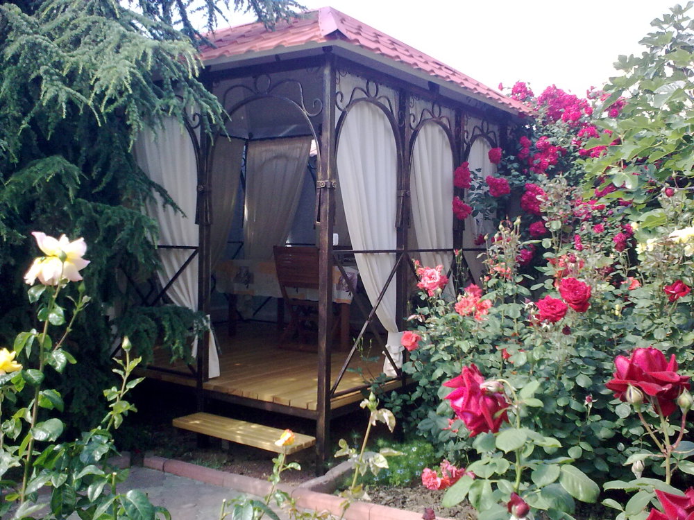 Закрытый зеленый двор с беседкой и мангалом, Во дворе имеется гостевой домик на 2-3 человека, которые также могут пользоваться двором. Место для 2-х авто.