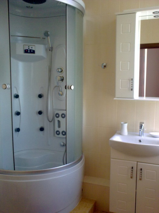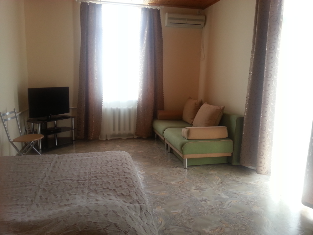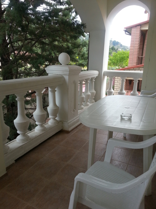 На этаже расположены 4 спальни с балконами и видом на море, 3 сан узла, TV, интернет, кондиционеры. Кухня-столовая с выходом на большую террасу. В кухне большой холодильник, микроволновая печь, эл. чайник, эл. плита, вся необходимая посуда. Холодная, горячая вода-постоянно.
