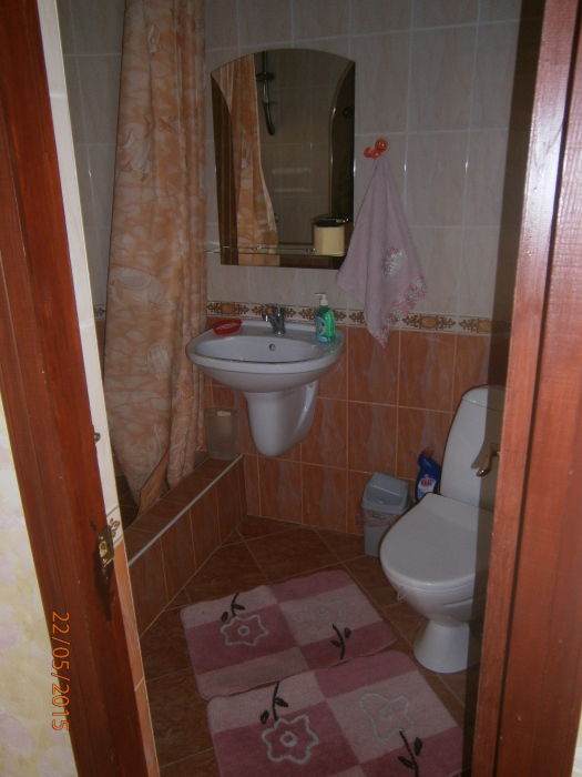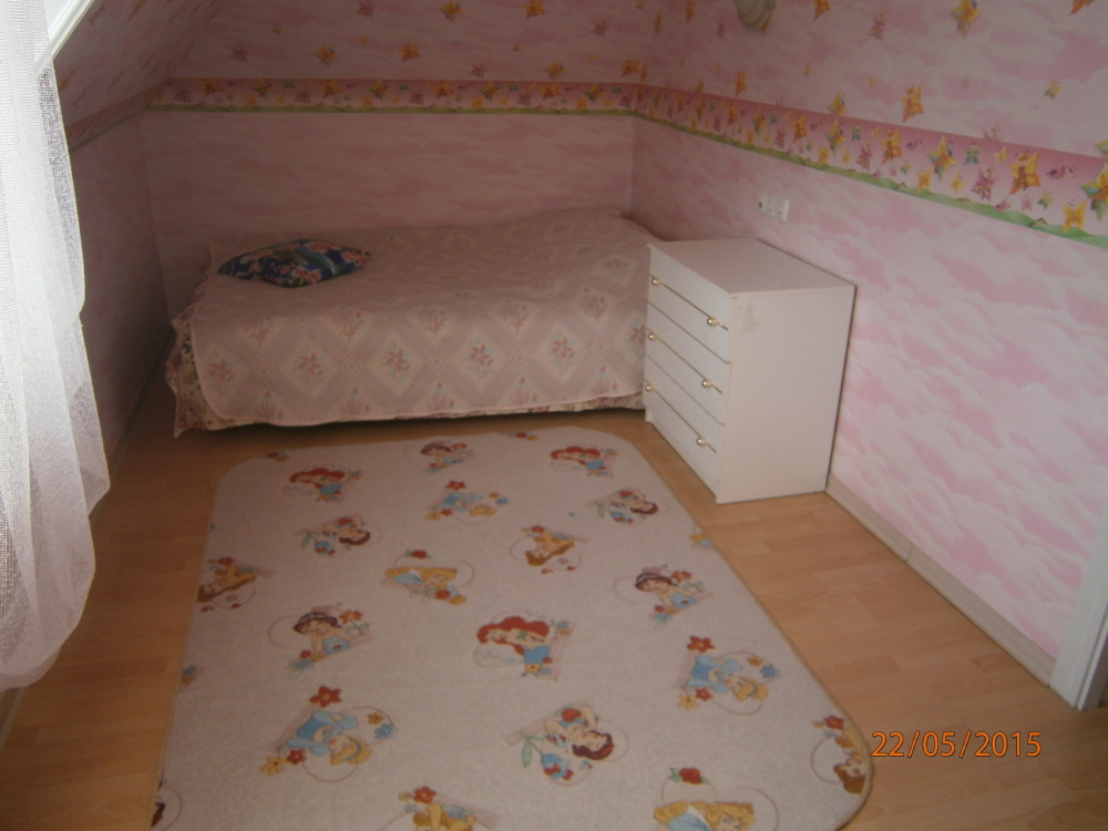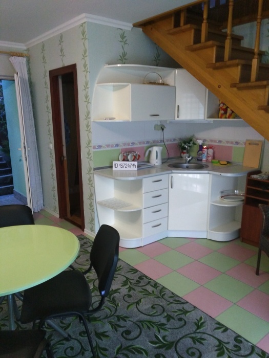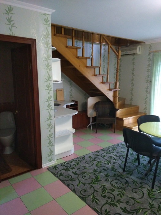 На первом этаже-кухня и санузел,на втором-две раздельные спальни и гостиная.