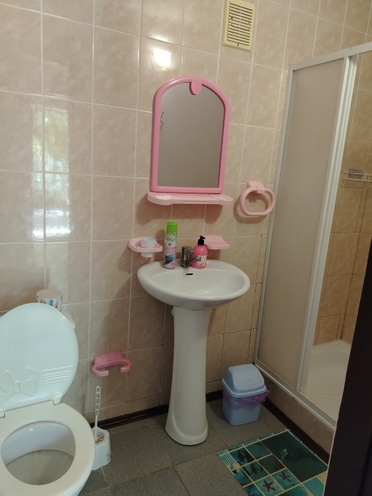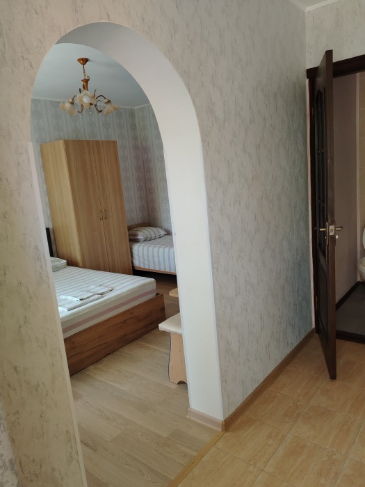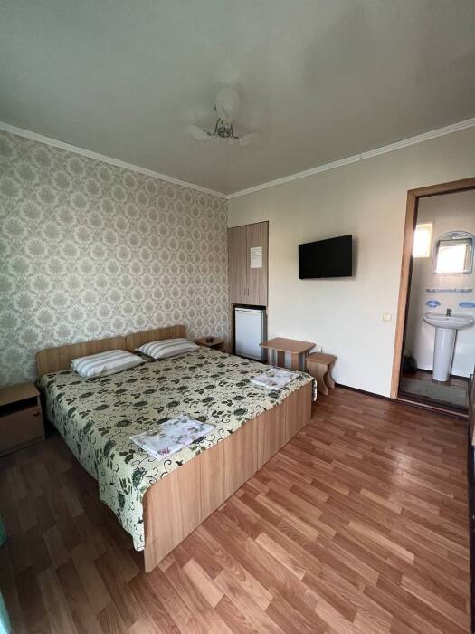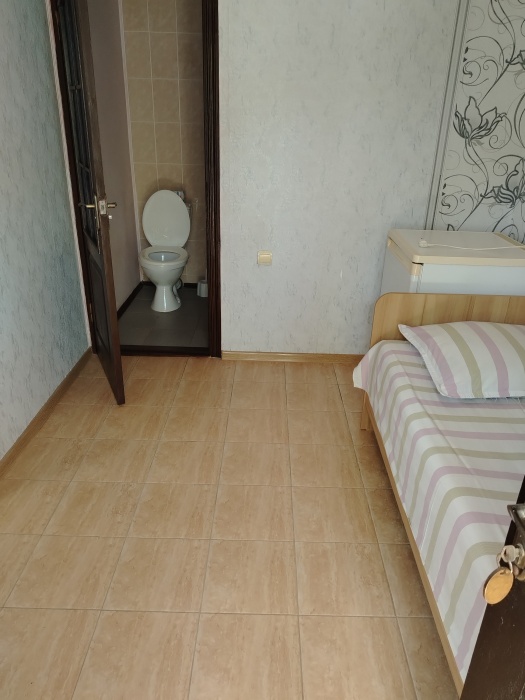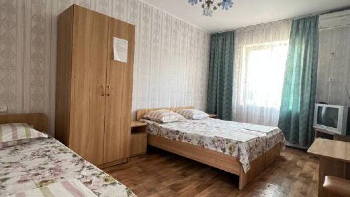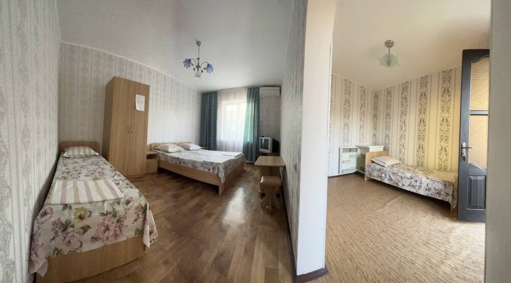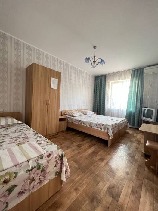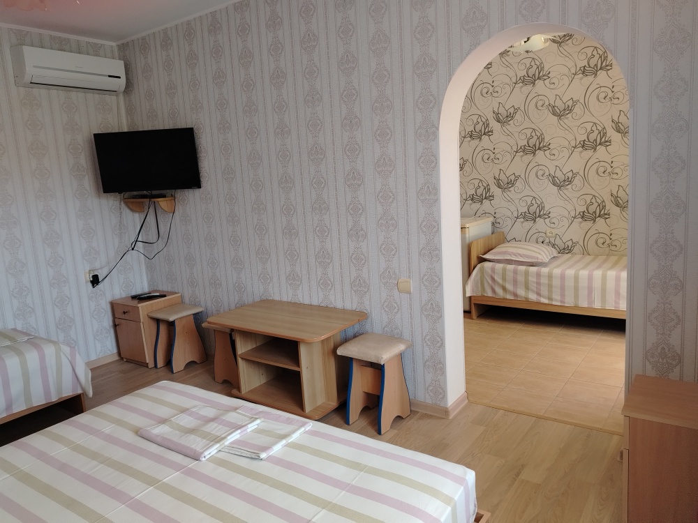 В номере две комнаты, в каждой 2-спальная кровать , душ и санузел общий на этаже ( горячая и холодная вода круглосуточно), телевизор, холодильник, кондиционер, wi-fi. Отдыхающим предоставляем полотенца и постельное белье.
