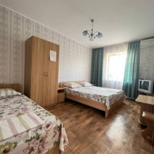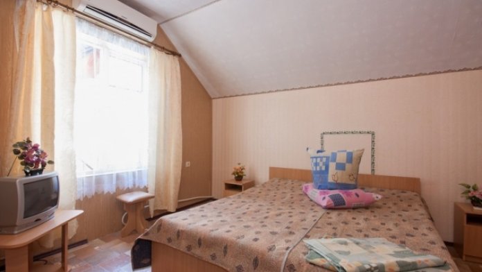 В номере находится 2-спальная кровать и 2 односпальные, душ и санузел ( горячая и холодная вода круглосуточно), телевизор, холодильник, кондиционер, wi-fi. Отдыхающим предоставляем постельное белье и полотенце