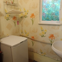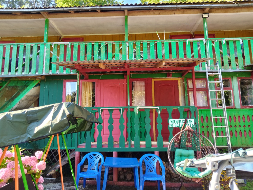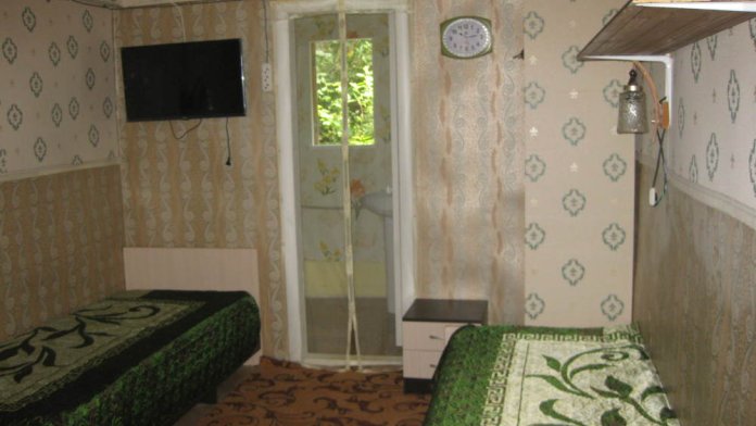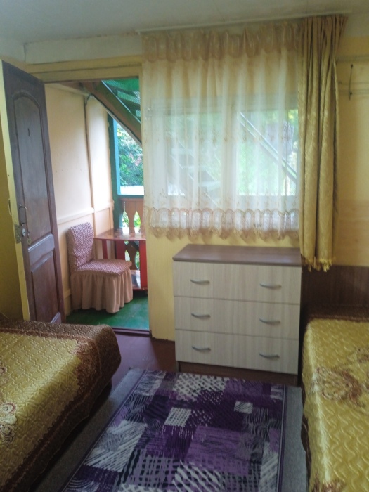 На одном крыльце два номера. В номере всегда прохладно, даже в жаркую погоду, постоянная естественная вентиляция за счёт горного прохладного воздуха. Есть набор посуды, электрочайник, микроволновка. Питание самостоятельное в оборудованных общих кухнях столовых. При желании, можно питаться вкусной, качественной и здоровой пищей у хозяйки за дополнительную плату. Или в столовых и кафе, которых много и близко.