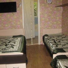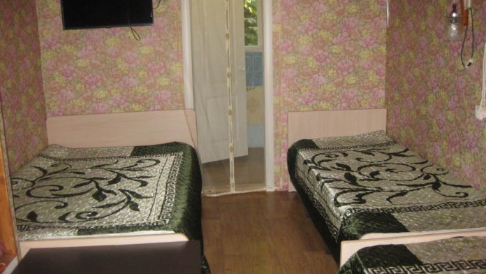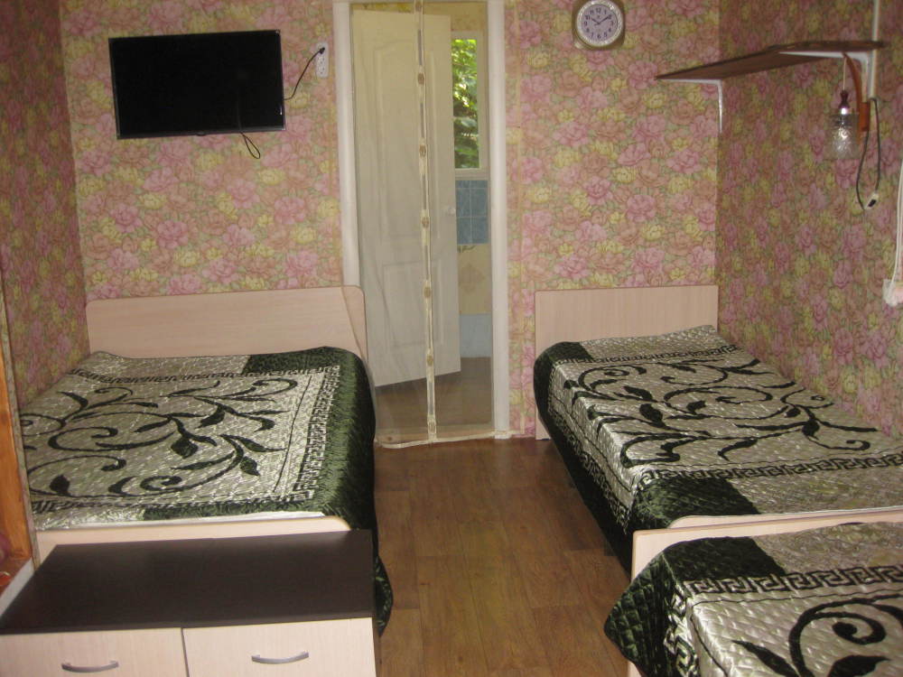 Комната на 2 чел, вход с общего балкона. Мебель отличная , напольная вешалка для одежды вентилятор. Удобства во дворе. Две кухни столовые оборудованы всём необходимым для комфортного пользования. Стол постоянный на весь период аренды. Посуда индивидуальная на каждую комнату