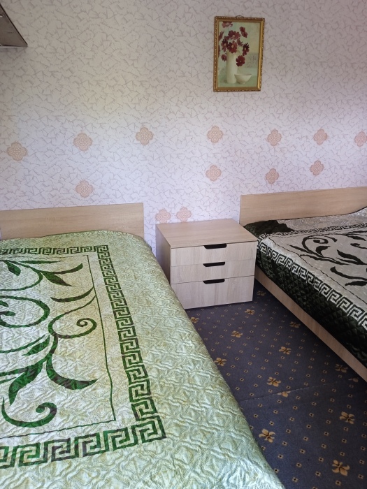 Кровати 160 и 90 см. Горячая вода без перебоев. Всегда прохладно без кондиционера. По запросу выдаётся вентилятор. Вопросы и подробная информация по телефону ватсап, мах
