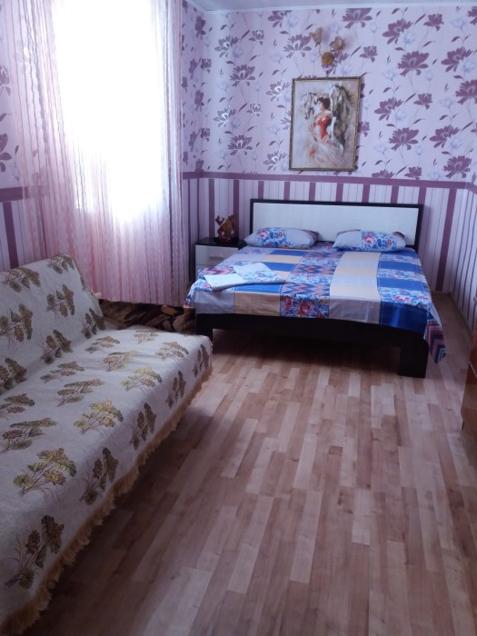 Для больших семейных компаний, автотуристов. Сдам свой большой дом-дачу до 12 человек в г. Евпатория (садовое товарищество «Весна», 8-я аллея). 2 этажа — на каждый этаж отдельный вход, 4 спальни + две веранды, 4 двуспальных дивана, три 2-спальные кровати, 3 санузла(два в доме + 1 на улице), две стиральные машины-автомат, 3 душа(два в доме + 1 на улице), 2 бойлера, 2 кондиционера, 2 кухни, микроволновка, 2 больших холодильника, Wi-Fi по всей территории, плазменные телевизоры Smart со всеми функциями, игровая консоль с играми, везде евроокна с москитными сетками, ламинированные полы. Дом: 2-этажный, большой огороженный закрытый двор, место под стоянку 4 машин, большой каркасный бассейн с фильтровальной установкой, шезлонги, большая беседка, мангал, коптильня, + летний душ(бойлер), рядом тёплое солёное озеро с лечебной грязью (есть надувная 2-местная лодка) — в озере можно купаться, рыбалка, сосновый лес. 4 км до центра города и до моря(возможна доставка на любой пляж и обратно на своём авто), остановка маршрутки — 300 метров от дома. На маршрутке 10 мин. до ул. Симферопольская — песчаные пляжи. До песчаной косы (большие пляжи) при въезде в Евпаторию — 5–7 минут на машине, до аквапарка 10–15 минут на машине. Молодёжные компании без детей и взрослых не принимаем. Дом сдаётся целиком под ключ - живёте только Вы. Мы с мужем живём на этой же территории в своём отдельном от вас домике, вам не мешаем, но зато всегда поможем и подскажем, если понадобится.