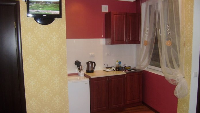 В номере евроремонт, кондиционер, новая мебель, своя кухня, холодильник, санузел, холодная, горячая вода круглосуточно. Кабельное ТV - 67 каналов, Интернет WI-FI, утюг, гладильная доска, мангал.