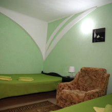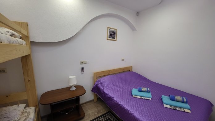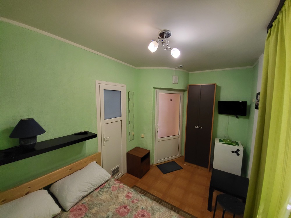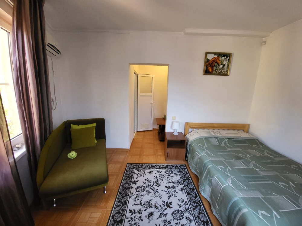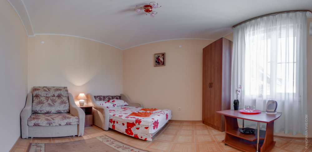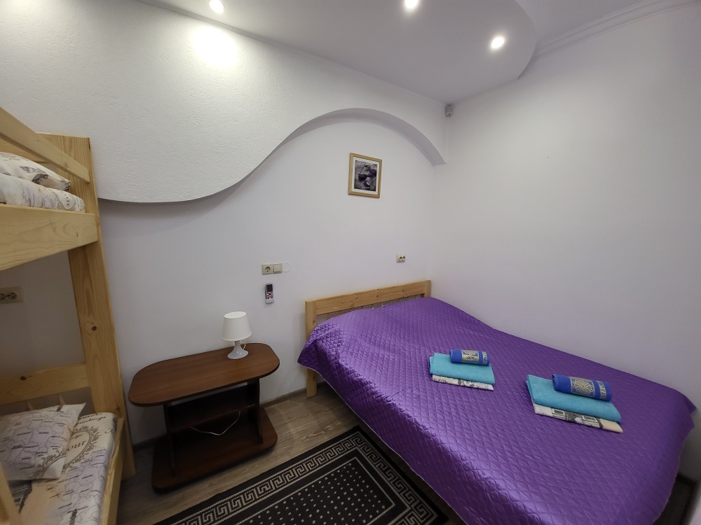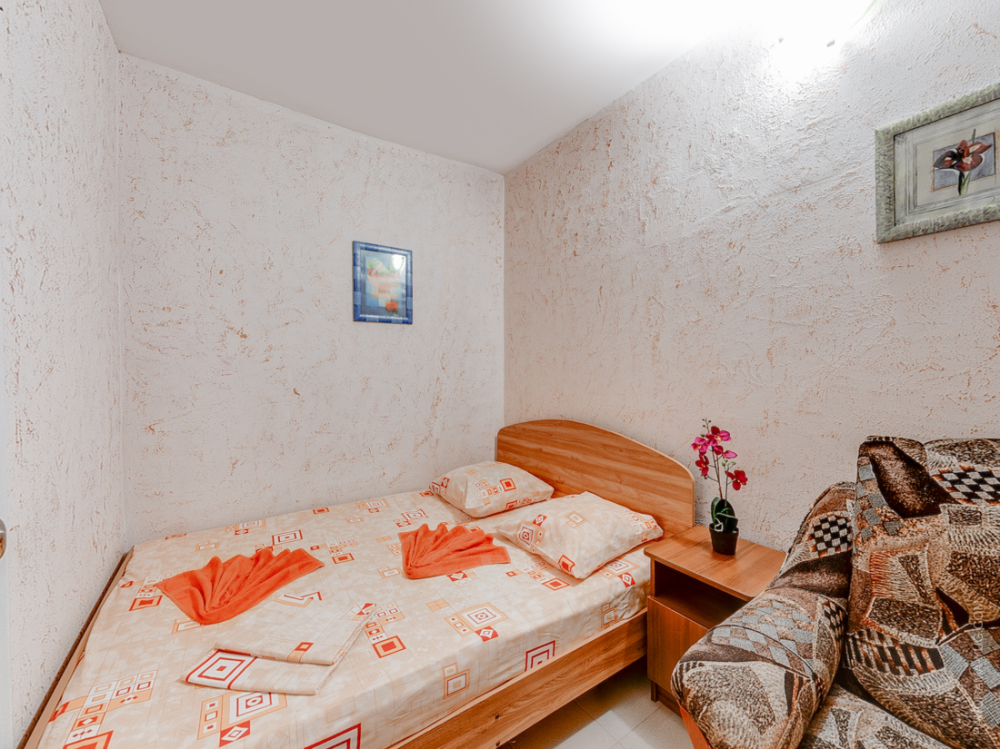 Этаж 2 или 3. Мебель: двуспальная кровать, 2-х ярусная кровать (уточняйте при заказе), шкаф , прикроватные тумбочки, столик, зеркало, москитные сетки на окнах.