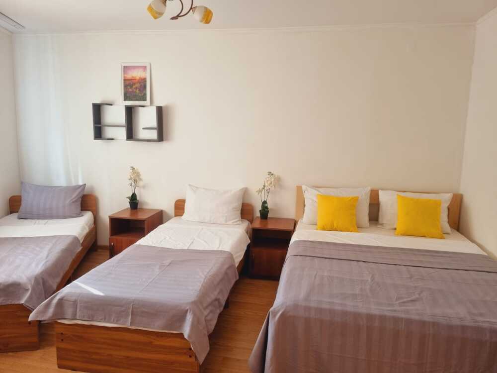 Удобства: сплит-система, холодильник, ортопедические матрасы, гипоаллергенные подушки,плоский телевизор, электрочайник, набор посуды для принятия чая/кофе, москитные сетки на окнах, гигиенические принадлежности, белье: постельное белье , полотенца , пледы.