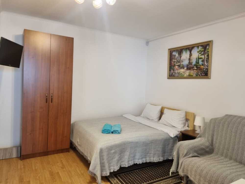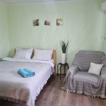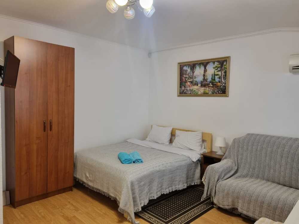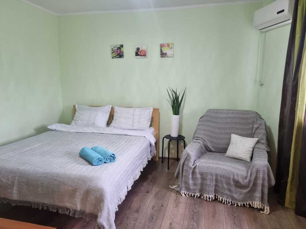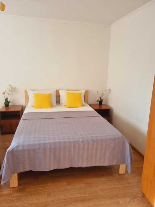 Удобства: мини-кухня (холодильник, мультиварка, необходимая посуда, эл.чайник) сплит-система, плоский телевизор, холодильник, эл. чайник, посуда, балкон, москитные сетки на окнах, ортопедические матрасы, гигиенические принадлежности, белье: постельное белье и полотенца.