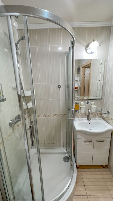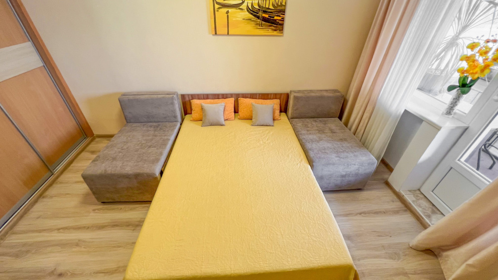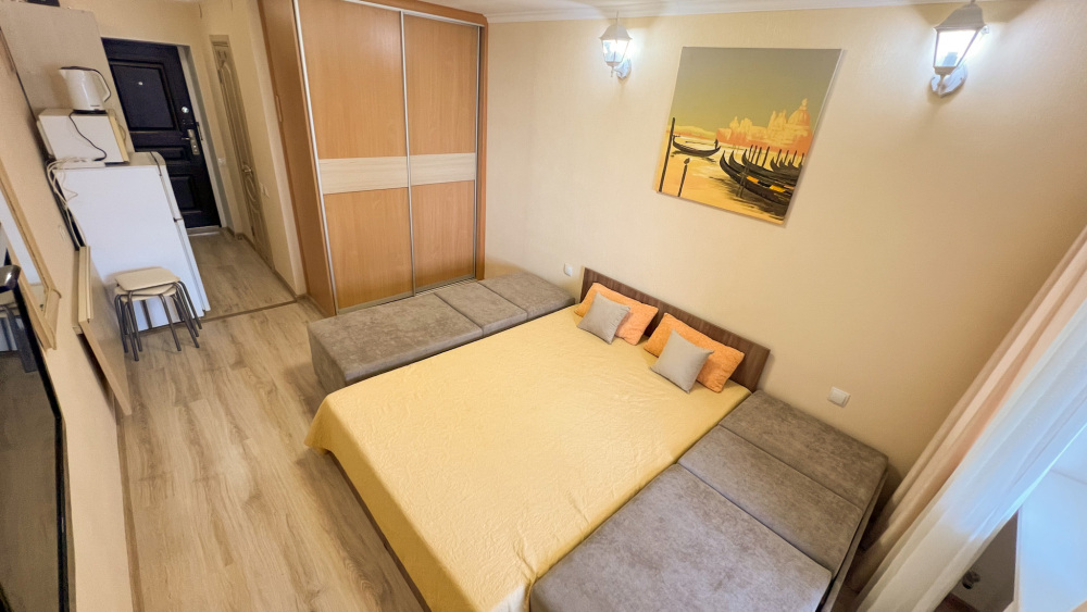 Пляж мелко-галечный, песочный. Wifi, холодильник, чайник, мультиварка, посуда, бойлер 50л, кухонный стол, комфортная! кровать 2-х спальная с доп. топпером 4 см (1,4х2,0)+ две раскладных кресло-кровати (0,7х1,83), кухонный стол, мебель на балконе (стеклянный стол + 3 кресла ротанговых), душ. кабина, цифровой сейф, бесплатная парковка у дома.