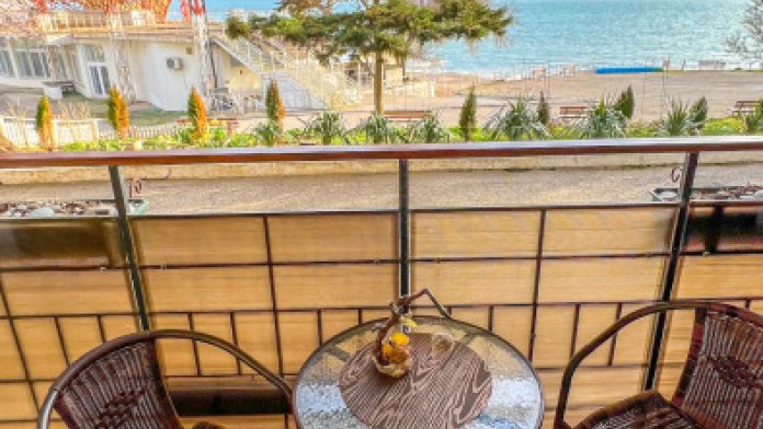 Закрытая охраняемая территория. Шикарный вид на море с собственного балкона! 1 линия, до пляжа 15м! При этом вся инфраструктура в шаговой доступности: ночной клуб, ресторан, многочисленные кафе, столовые, магазины продуктовые и овощные; собственный пляж с теневыми навесами; игровые аттракционы для детей; ларьки с промтоварами.